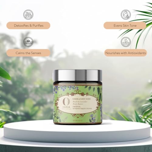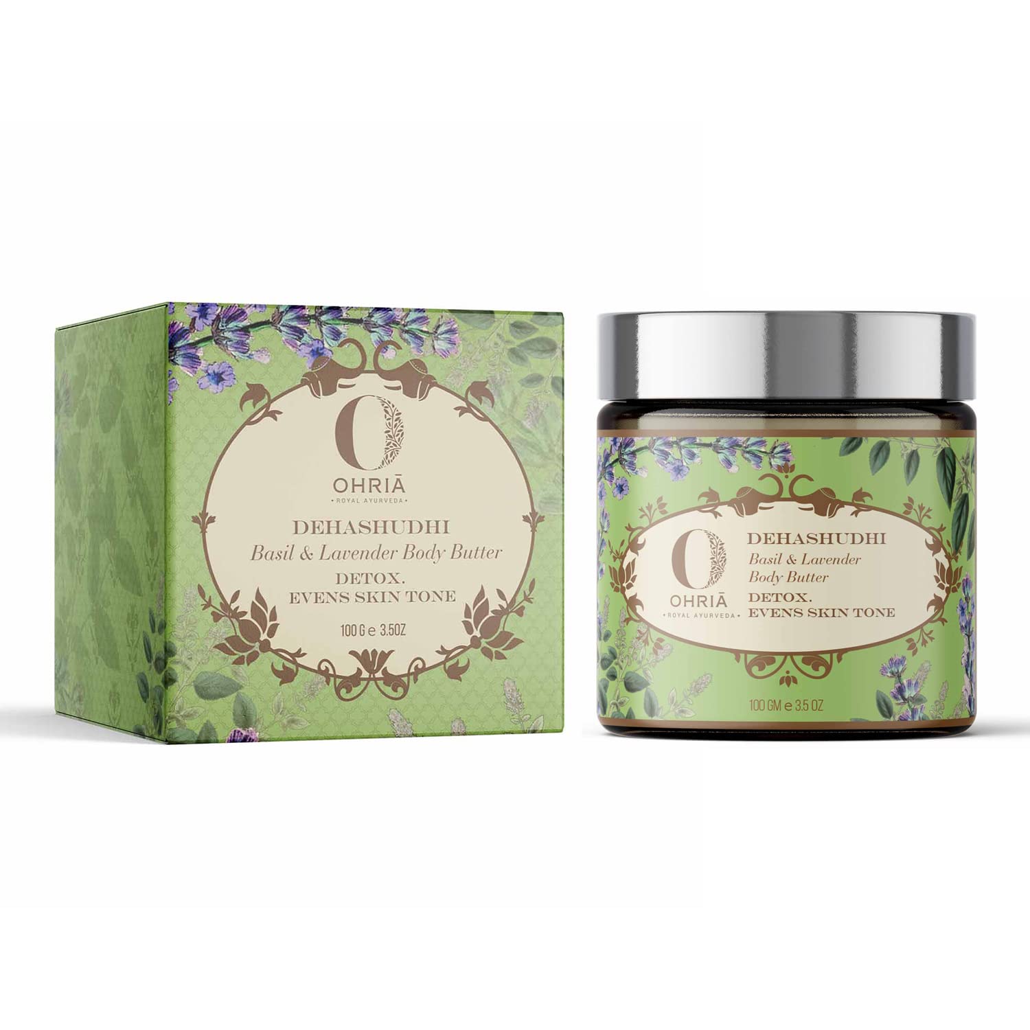 Ohria Ayurveda Dehashudhi Basil & Lavender Body Butter | Detox, Hydrating and Evens Skin Tone | For All Skin Types - 100g