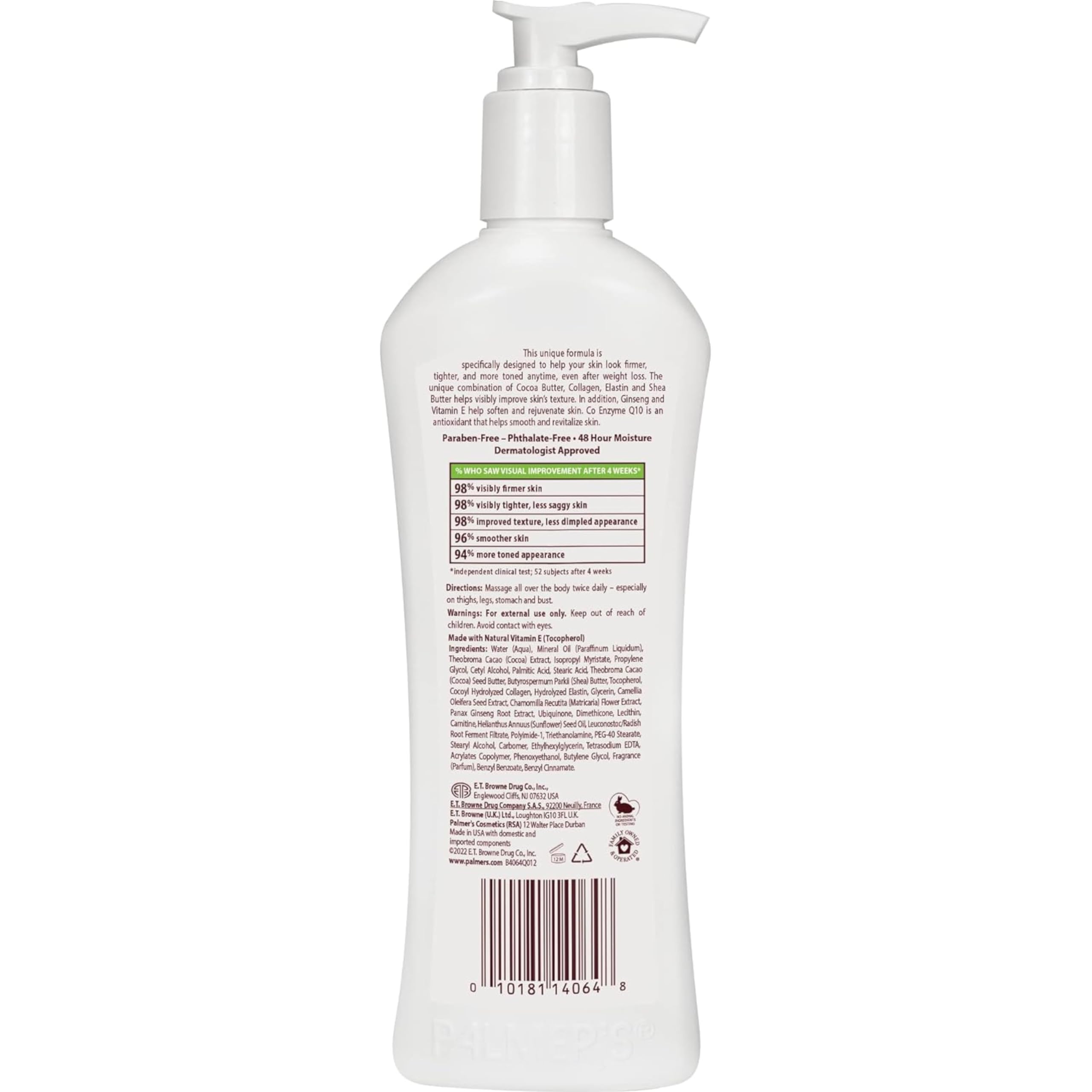 Palmer's Firming Butter Plus Q10 Cocoa Butter Formula.With shea butter collagen elastin & Vitamin E.Tightens skin.Firms & tones.Paraben free.Phthalate free.Dermatologist tested.