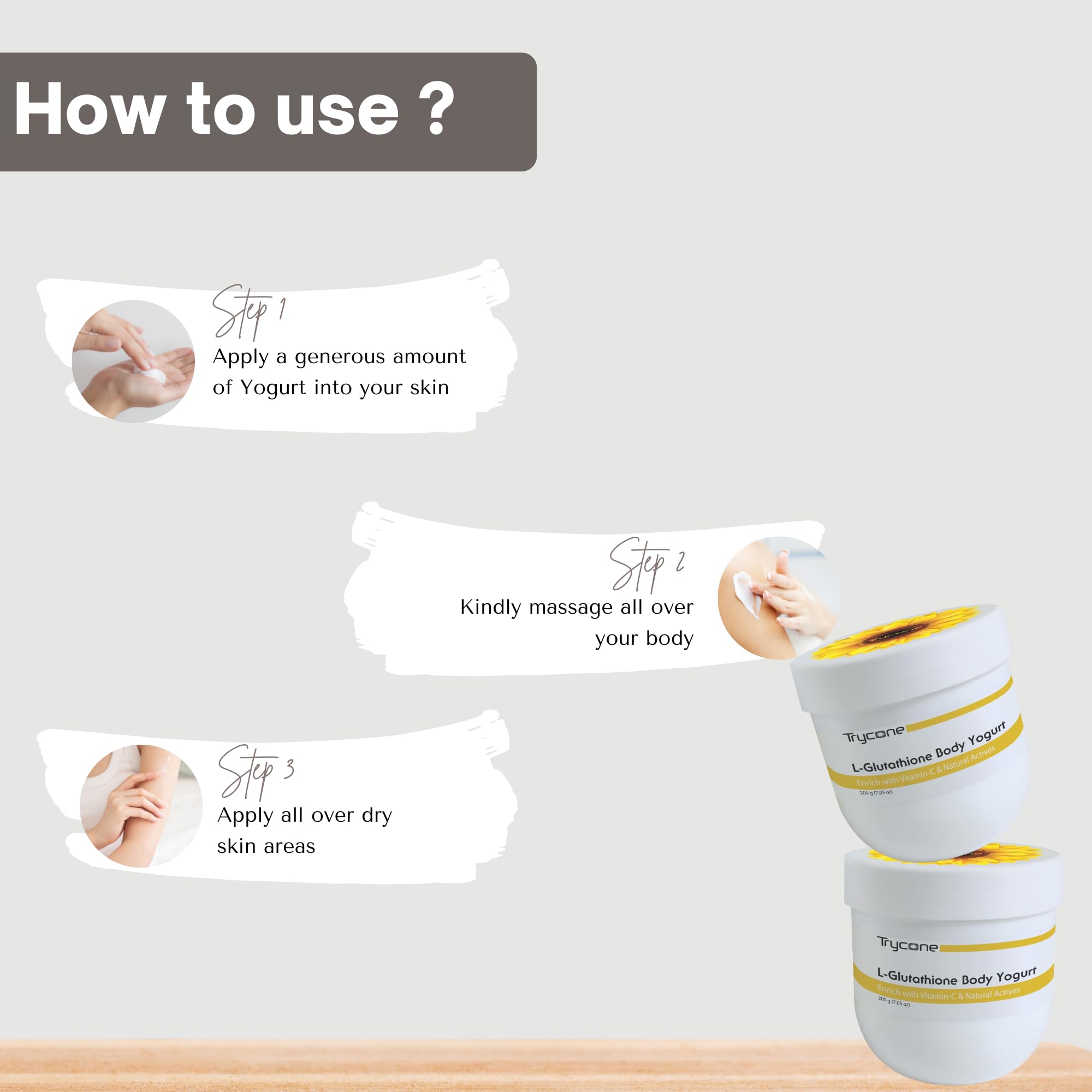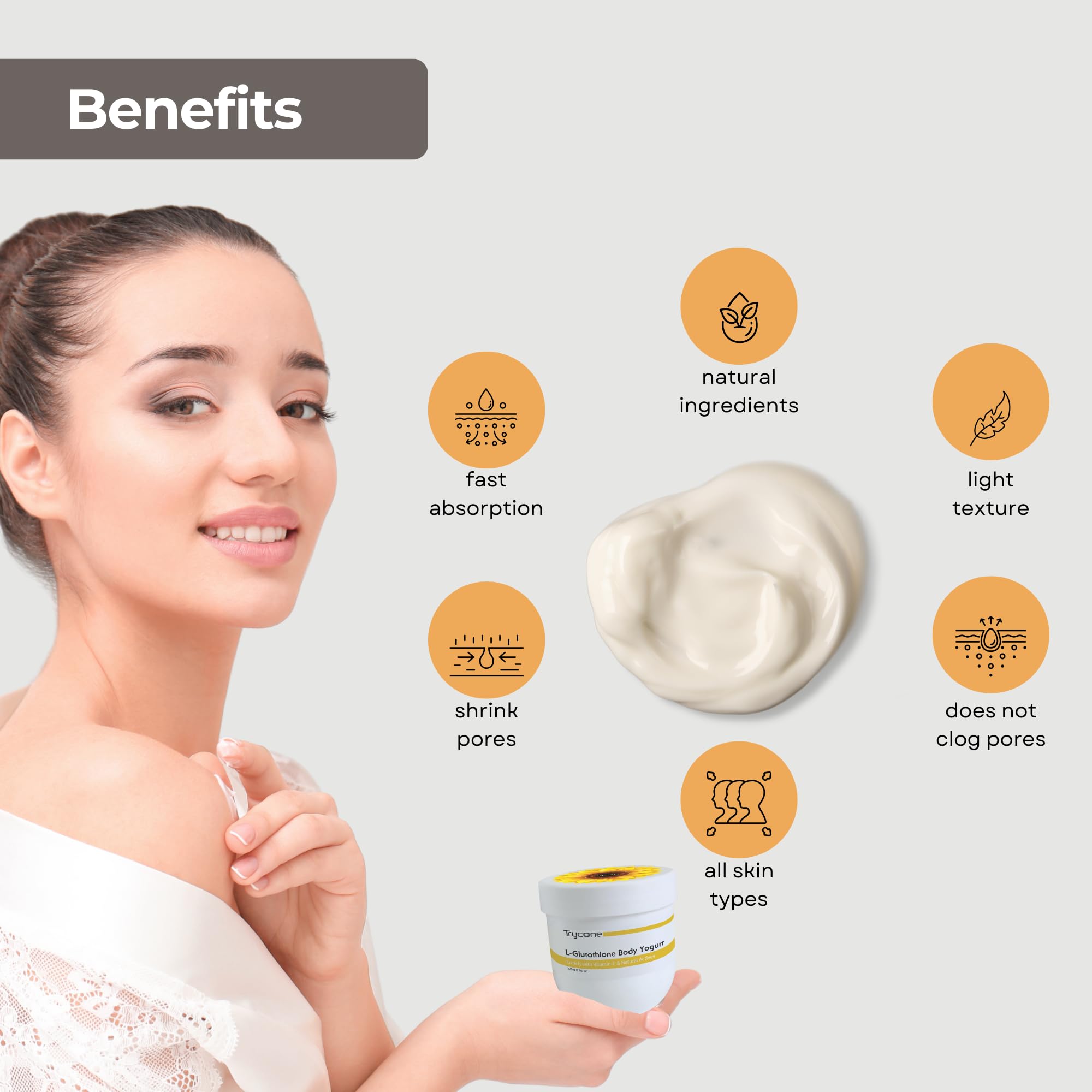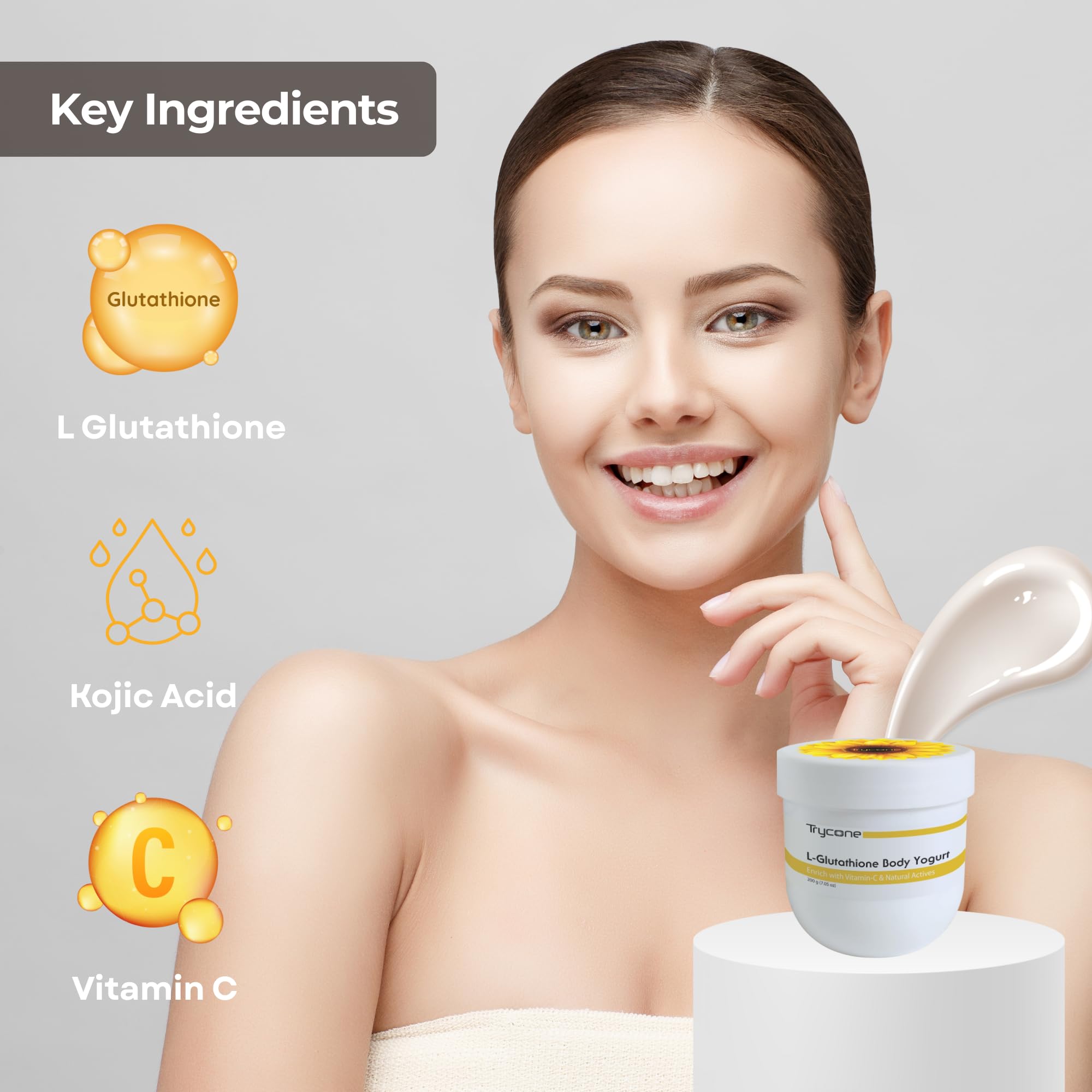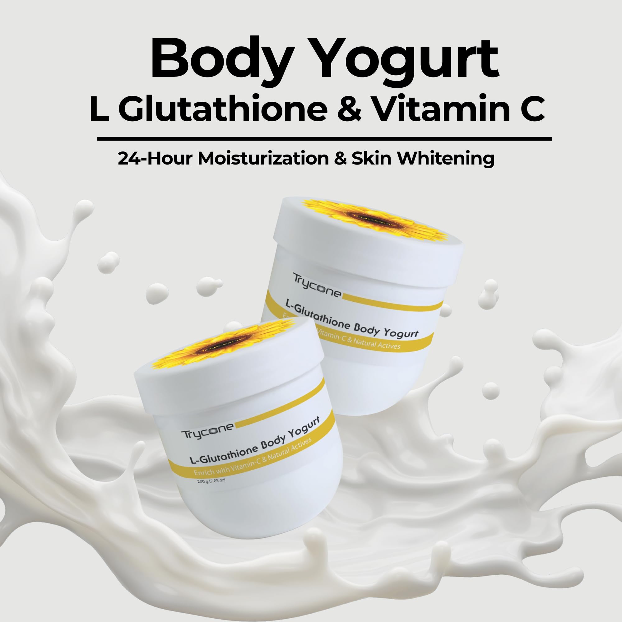 Trycone L Glutathione & Vitamin C Skin Brightening Body Yogurt with SPF-15 Enriched with Sunflower Oil for 24-Hour Moisturization & Skin Whitening 200 gm Unisex