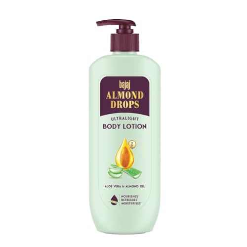 As temperatures rise and the sun beats down our skin often feels parched and needs replenishment. Traditional body lotions can leave us feeling weighed down and uncomfortable exacerbating the discomfort of summer heat. Enter Bajaj Almond Drops Ultralight Summer Body Lotion for Women & Men your summer skincare solution. Infused with the essence of Aloe Vera Almond Oil and Vitamin E this innovative formula fights dryness from the very first use and offers nourishment and hydration* without any heavy or sticky feeling. Say goodbye to sticky skin and hello to a refreshing burst of hydration that lasts long*. Our non-sticky formula absorbs quickly making your skin feel smooth* and revitalized. With Bajaj Almond Drops Ultralight Body Lotion for Summer you can confidently embrace the summer season knowing that your skin is nurtured by unparalleled care and quality. Say yes to soft and supple skin* all summer long.