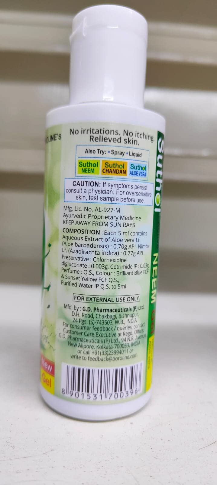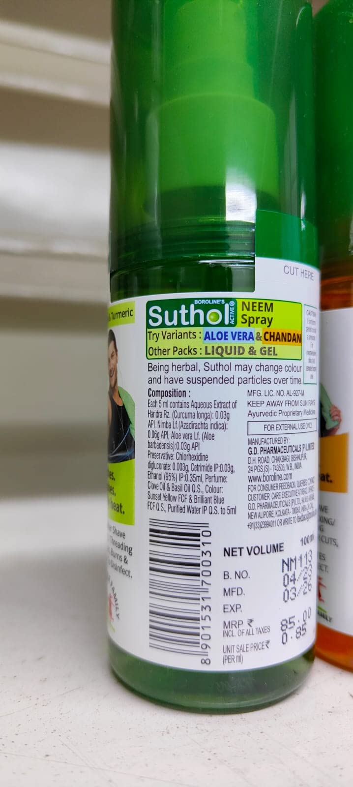 HomeHealth & PersonalSkin CareBody CareBody Lotion & CreamBOROLINE's Suthol Active Neem Gel 100 ml X 2 + Neem Spray 100 ml X 2 | Stops Skin Irritations Prickly Heat Itching Rashes | With Tumeric & Aloe vera | Ayurvedic Antiseptic Spray & Gel (Pack of 4)