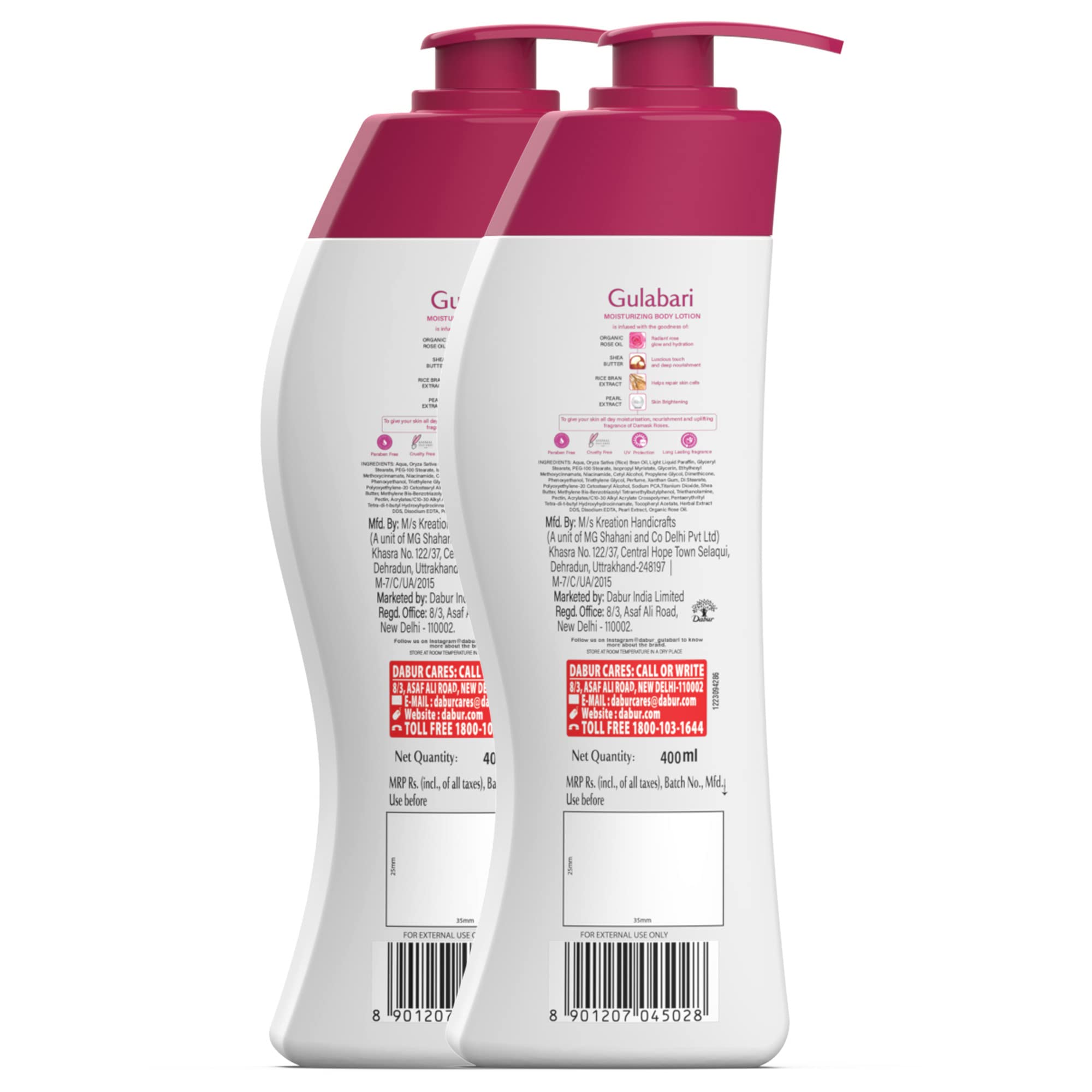 Dabur Gulabari Moisturizing Lotion 800ml (Pack Of 2) For Dry & Dull Skin Made With 100% Organic Rose Oil Dermatologically Tested Paraben Free