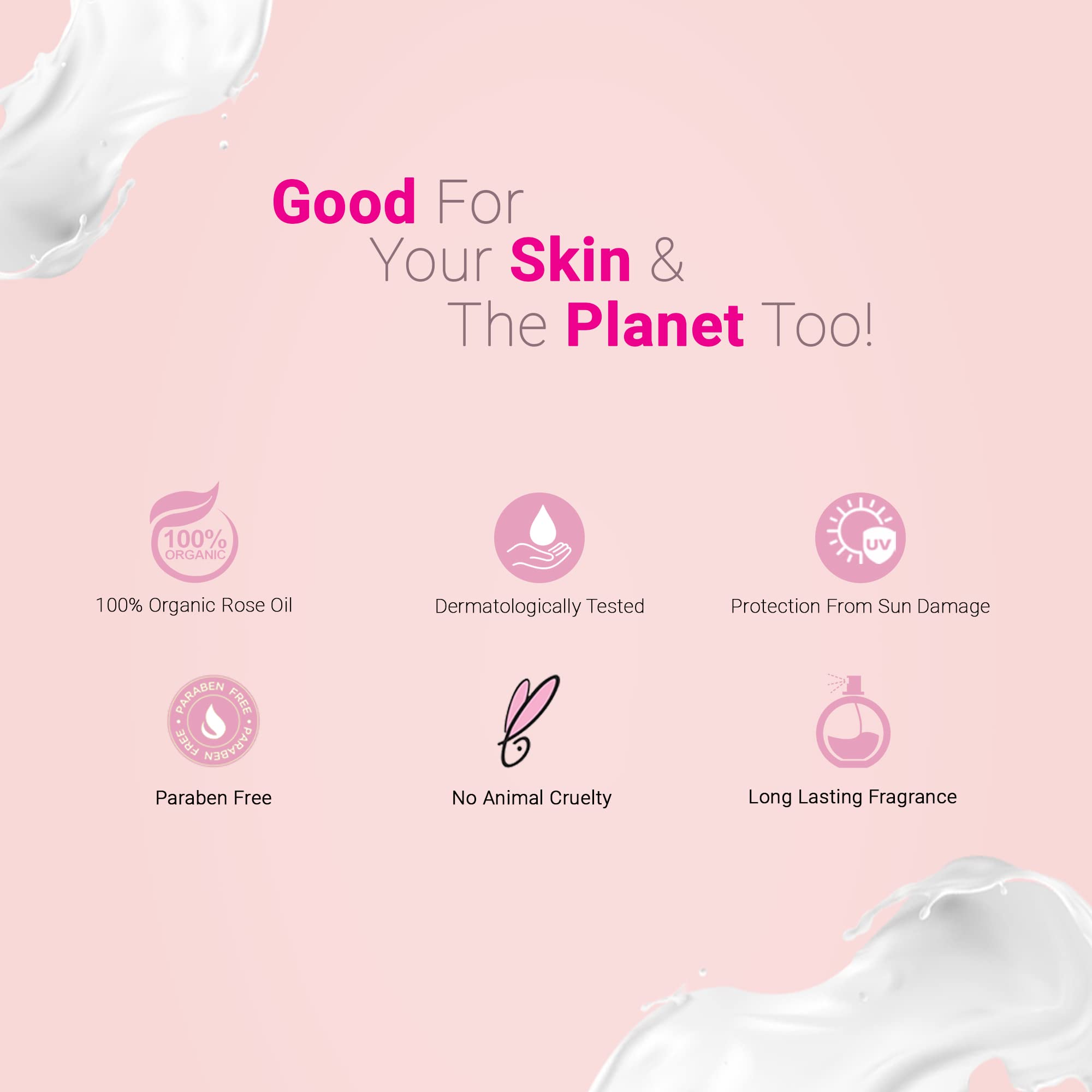 Contains Organic rose oil for rose glow Shea butter for deep nourishment Pearl extract for skin brightening and Rice bran extract for repair of skin cells