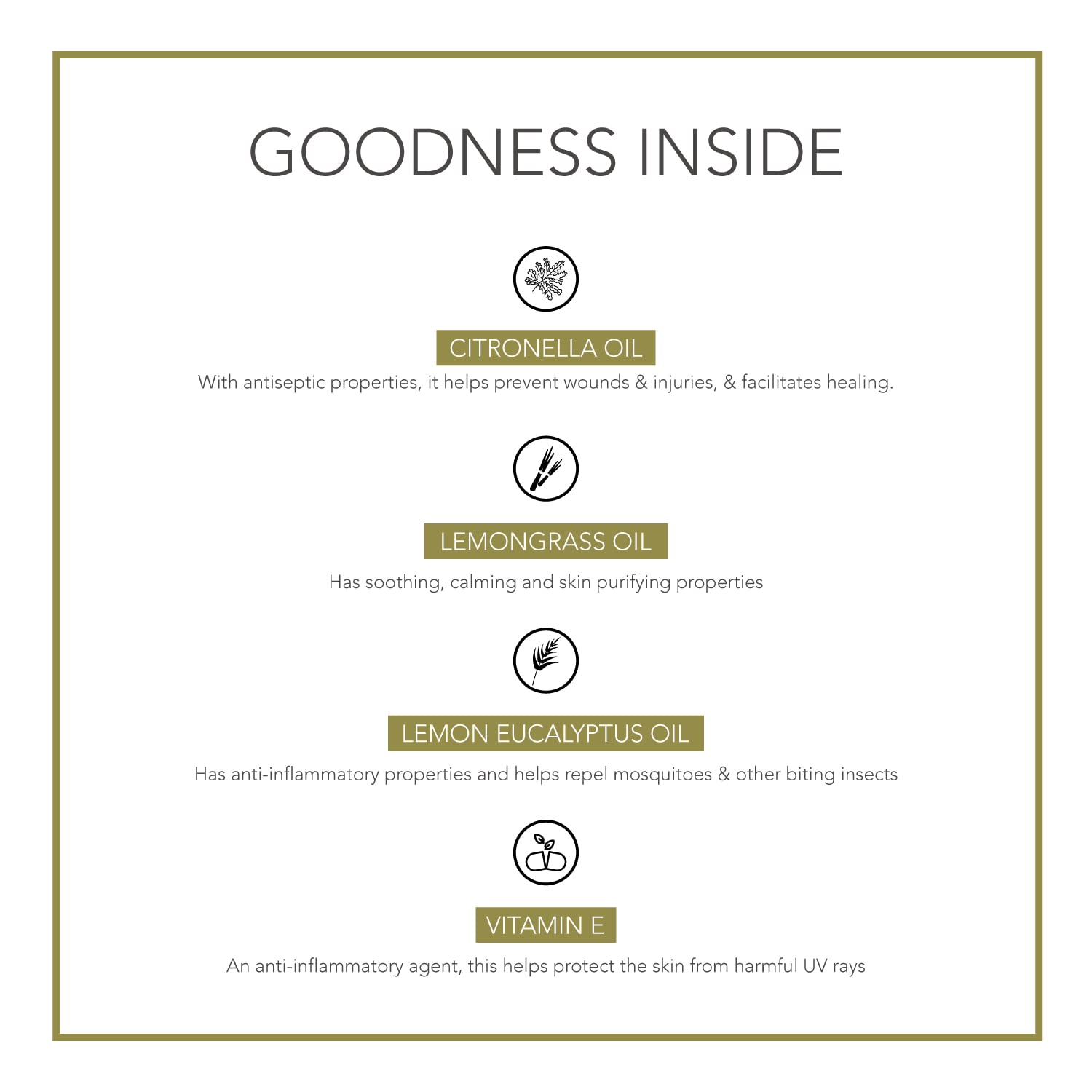 fabessentials Mosquito Repellent is a 100% natural DEET-free insect repellent made with oil Lemongrass oil Lemon eucalyptus oil & Vitamin E that provides long-lasting protection against mosquitoes and other biting insects. Its lightnon-greasy formula is easy to apply and features a pleasant fragrance making it perfect for outdoor activities.