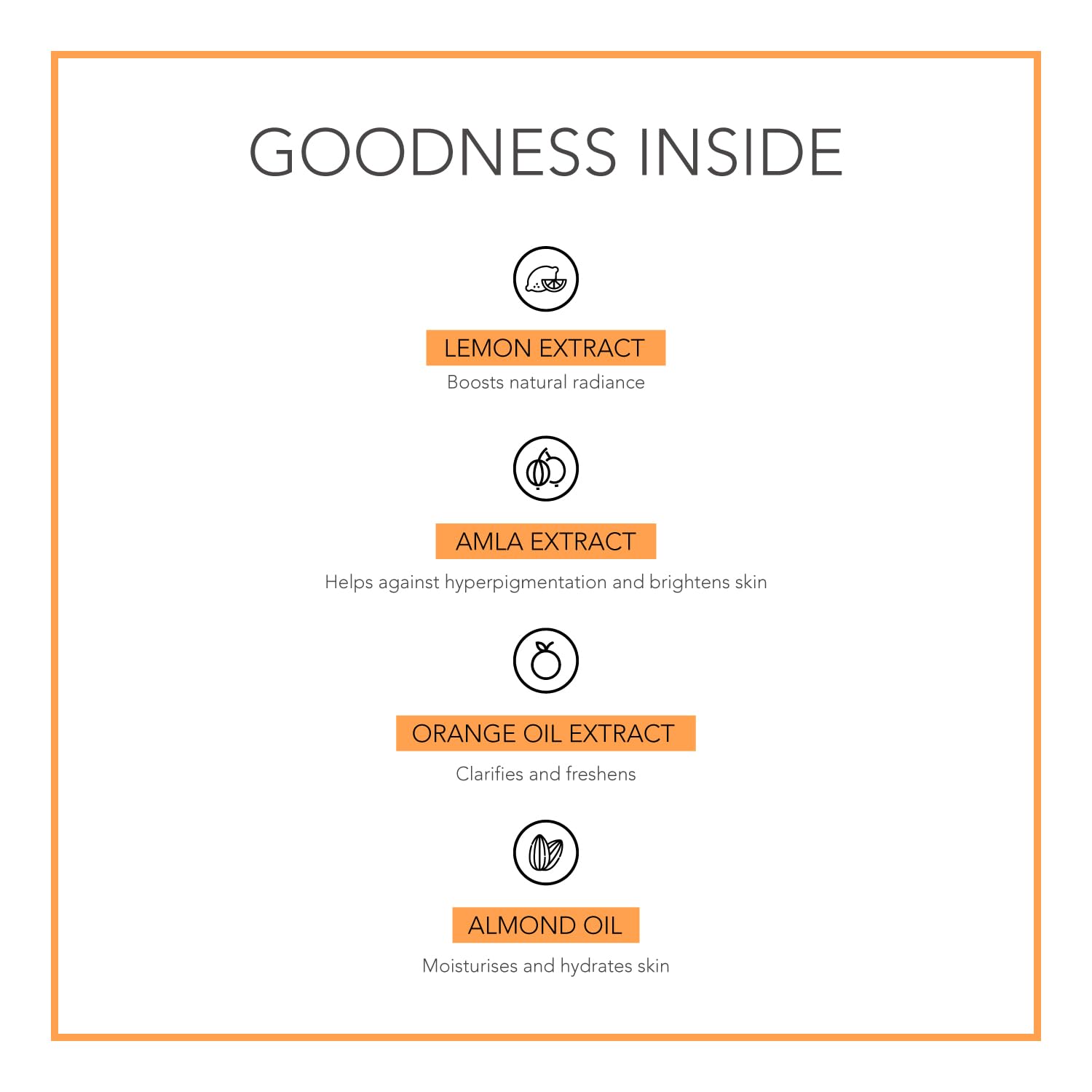 • Amla extract is packed with antithat have properties to keep your skin youthful."