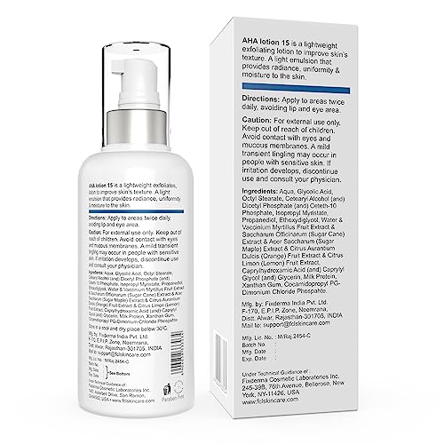 FIXDERMA COSMETIC LABORATORIES 15% Glycolic Acid Aha Lotion For Body And Face | Dead Skin Remover | Paraben Free Aha Exfoliating Lotion For Dry, Itchy And Rough Skin - 100Ml