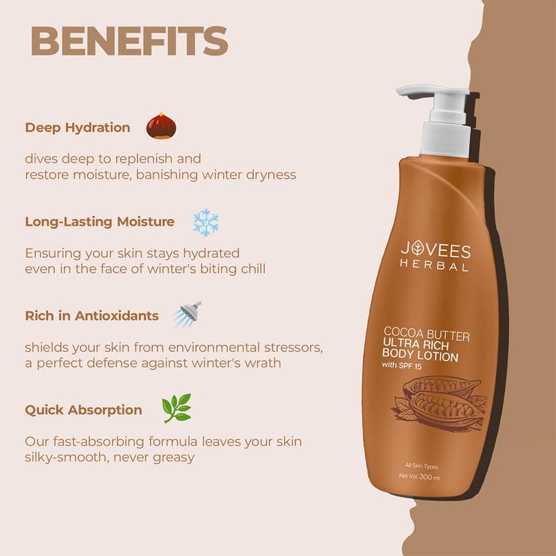 Jovees Herbal Cocoa Butter Hand & Body Lotion Hydrates/Moisturize 300 ml (Pack of 2)