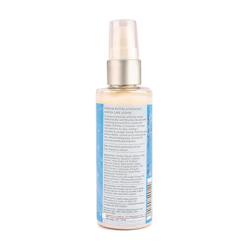 Quench your dry winter skin with our Kokum Butter & Pistachio lotion. A unique blend created to counter the winter dryness it is especially effective on chapped flaky skin and makes it soft and supple. Due to its natural affinity to skin Almond oil keeps the skin moisturised in the harshest of winter months.