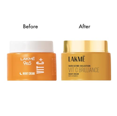 Introducing the Lakme 9to5 VitC+ Night Cream. Lakme's first vitamin C Night Cream that is enriched with the power of Vitamin C Murumuru butter and Shea Butter. Vitamin C also known as the beauty vitamin is a powerhouse of antioxidants which is known to provide a healthy skin barrier that can fight multiple skin problems like ageing pollution & sun damage and dullness of skin. Murumuru butter is known to moisturise skin without clogging and Shea Butter is known to lock in hydration in the skin for several hours. Lakme 9to5 VitC+ Night cream harnesses the power of vitamin C along with these potent ingredients and is designed to reduce skin dullness by fighting free radicals and promoting skin health. So you wake up with healthy glowing skin every morning. Key features: - Light weight on skin - Enriched with Vitamin C Murumuru butter and Shea Butter. - Moisturises effectively - Skin feels healthy and glowing in the morning - Improves skin texture - Gives smooth skin - Skin feels nourished - Makes skin soft and supple - No skin irritation For best results use the Lakme 9to5 VitC+ facial serum on freshly cleansed face in the PM and follow it up with the Lakme 9to5 VitC night cream.