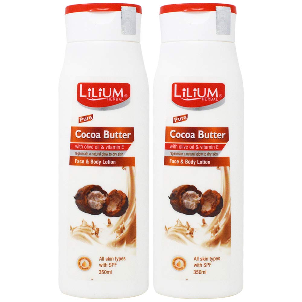 Lilium Herbal Cocoa Butter Face & Body Lotion 350ml Pack of 2 Hydrate & Natural Glow Moisturization Anti-Aging Antioxidant Defense Non-Greasy Radiant Skin All Skin Type With SPF