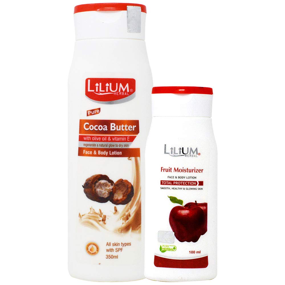 Lilium Herbal Cocoa Butter With Fruit Moisturizer Face & Body Lotion 350ml+100ml Pack of 2