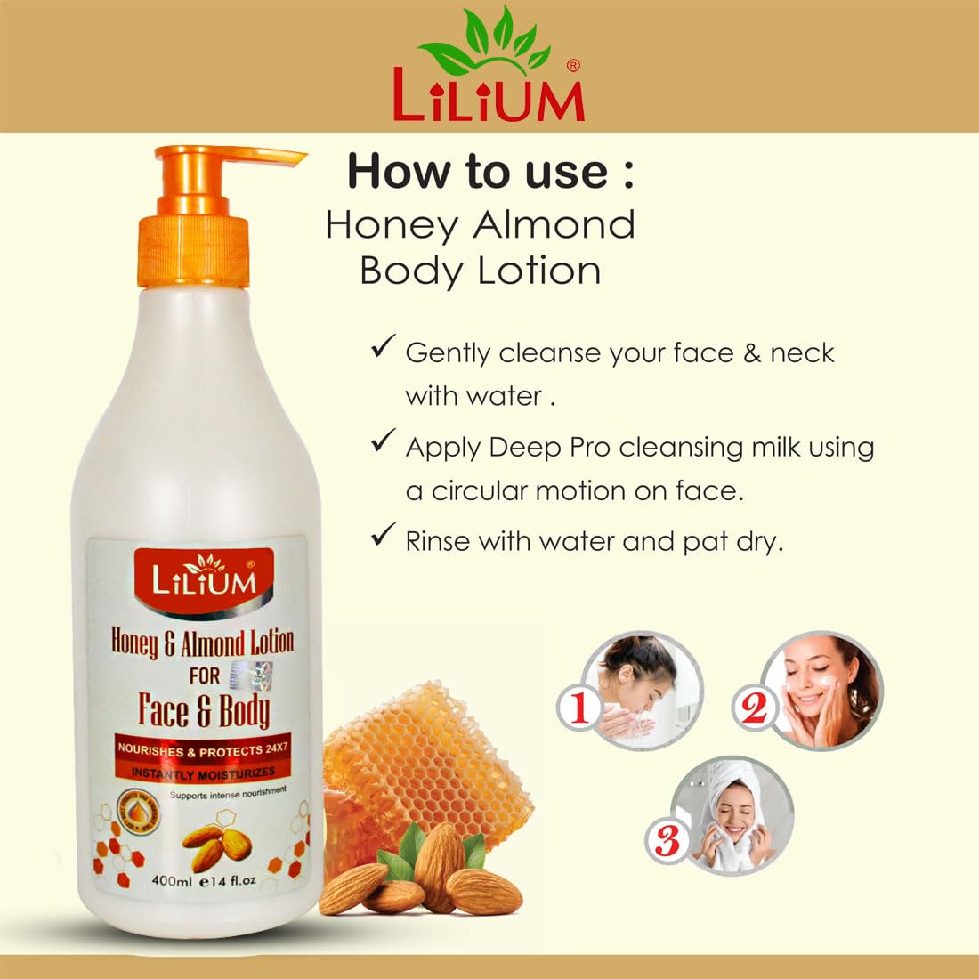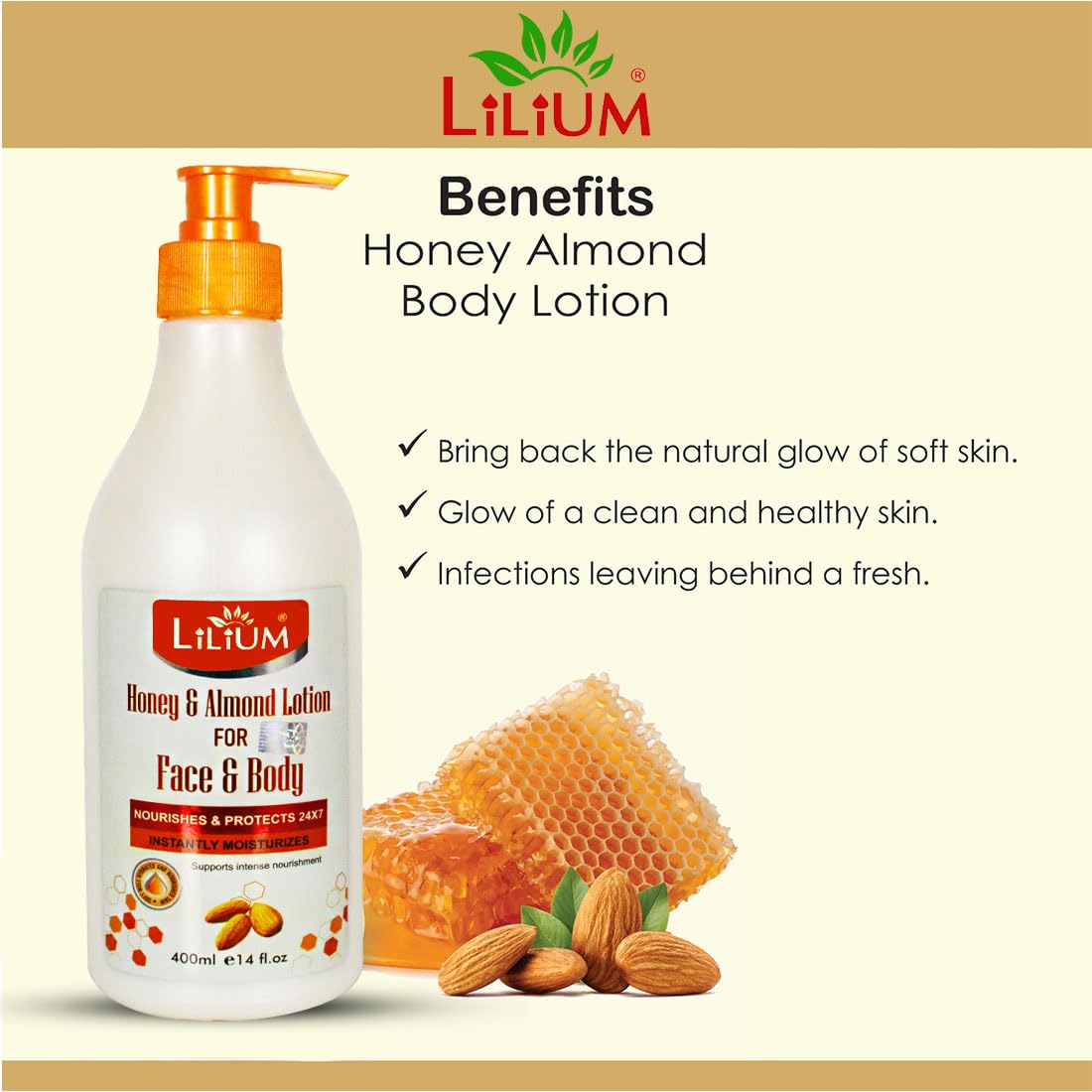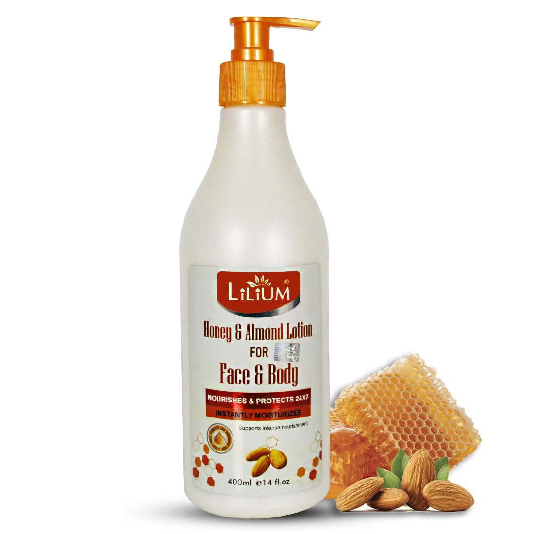 Lilium Honey & Almond Moisturizer Face and Body Lotion 400ml Nourishes & Protects 24X7 Hydrate & Revitalize Your Skin Instantly Moisturizes Supports Intense Nourishment All in One Skincare Daily Essential