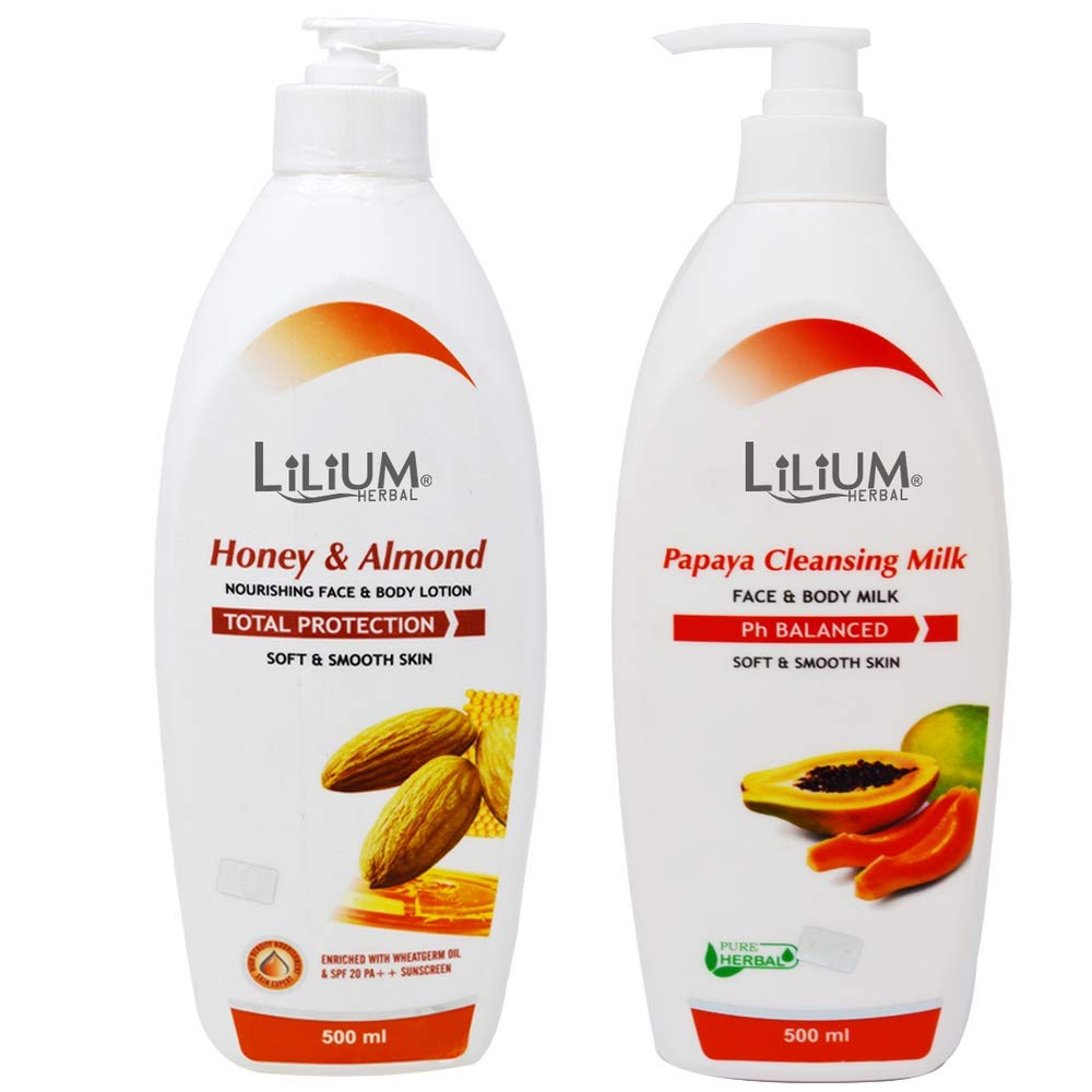 Lilium Honey & Almond Nourishing Face & Body Lotion with Papaya Cleansing Milk 500ml Each