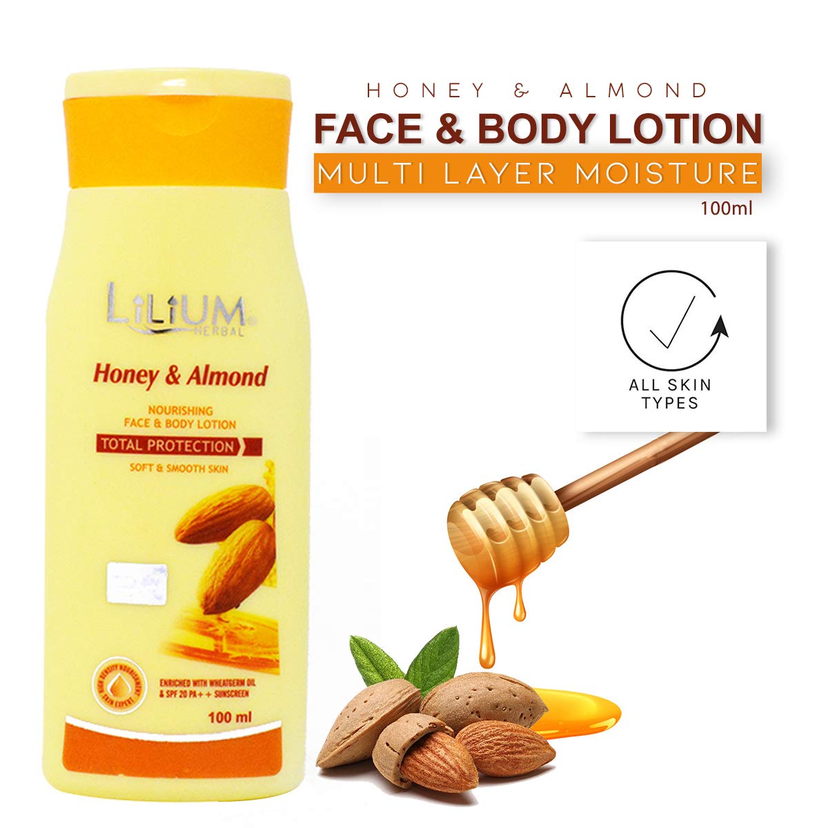 Lilium Honey & Almonds Face & Body Lotion 350ml Soft & Smooth Skin Nourishing Intense Hydration Revitalization Radiant Glow Rapid Absorption Soothing Calming All Skin Types