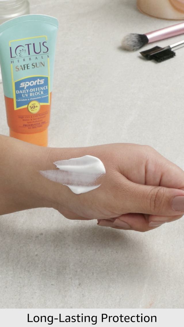 Safe sun sports daily-defence UV block SPF 50+ is a preservative-free non-greasy formulation that gives broad spectrum protection from UVA & UVB rays. This waterproof formulation is great for water and outdoor activities. It prevents the skin from sun tan sun spots freckles and pigmentation. It forms an invisible micro-filter to prevent penetration of fine pollutants in the skin provides protection from free radical damage and atmospheric toxins.