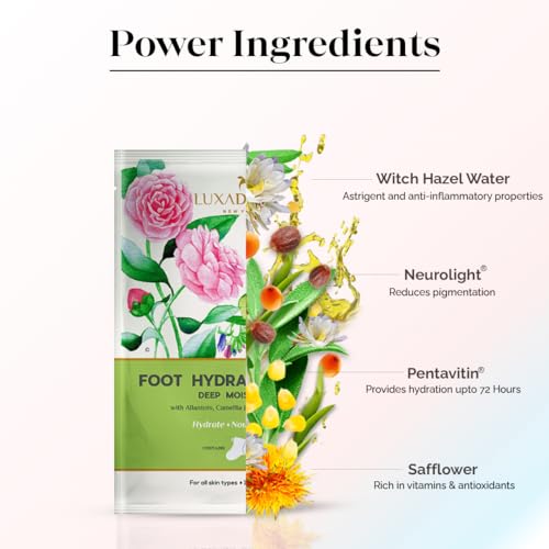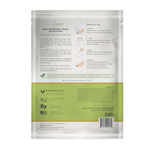 HEAL YOUR HEELS : LuxaDerme Deep Moisturizing Foot Hydration Socks give a nourishing boost to dull dry and rough feet while hydrating cuticles and reducing pigmentation. This mask infused with both scientifically proven ingredients and botanical extracts