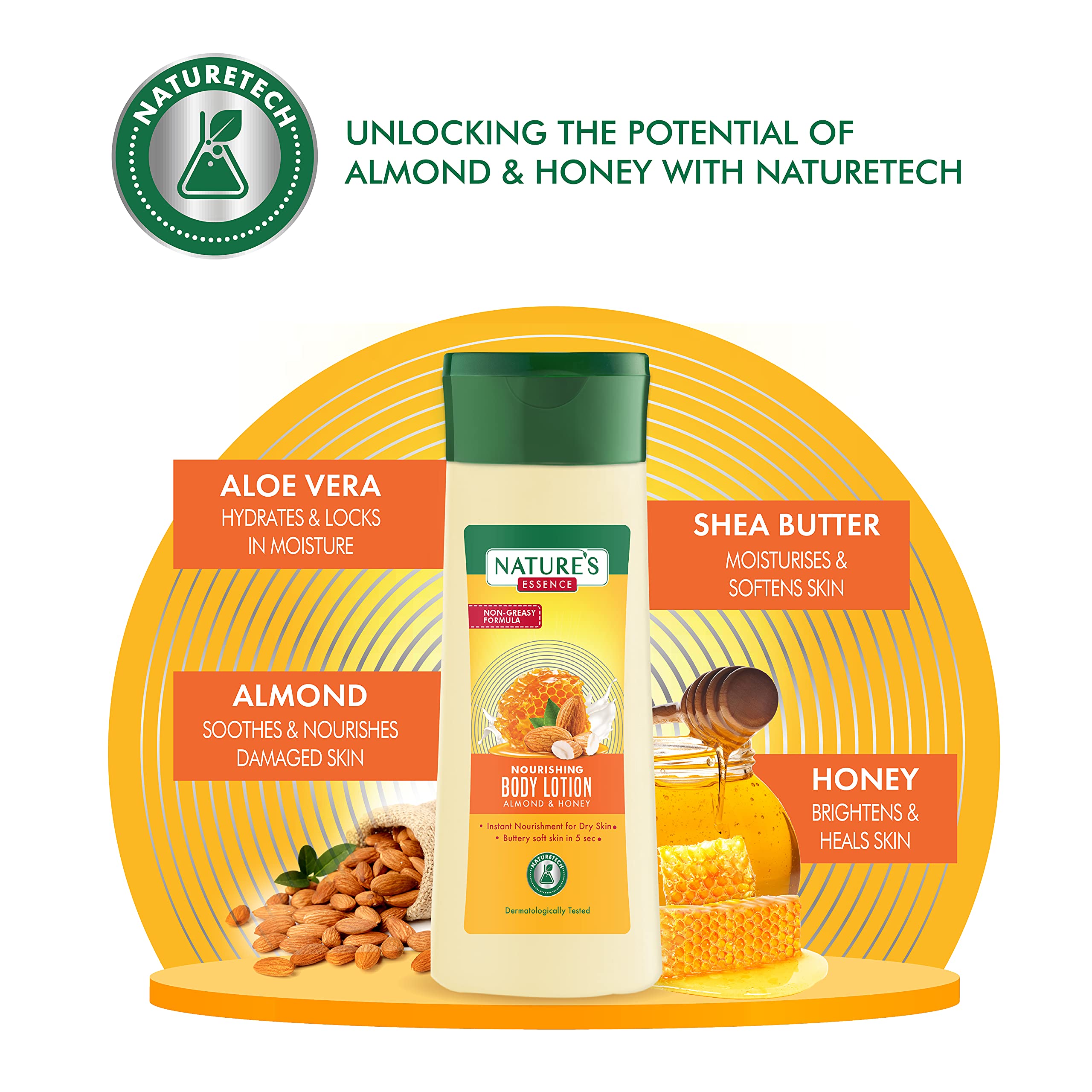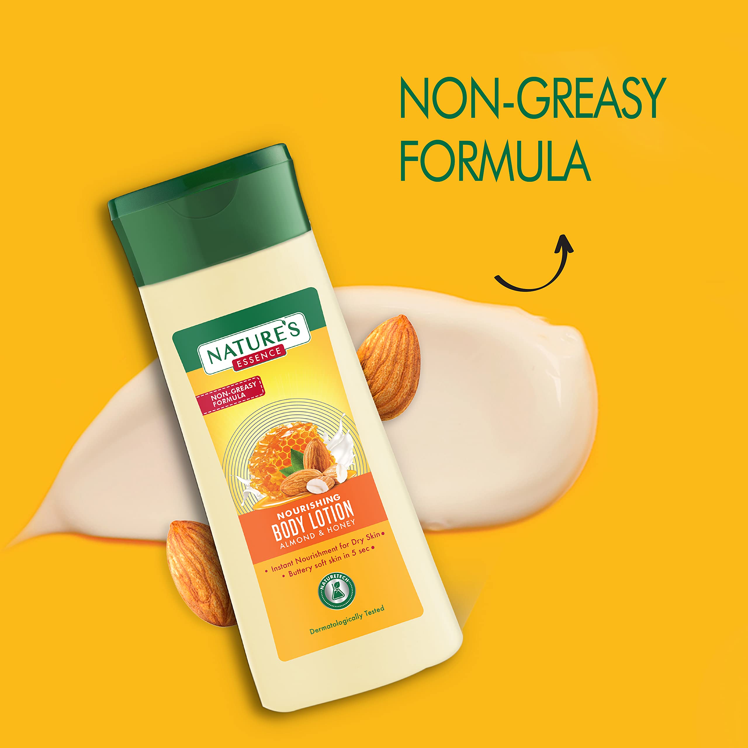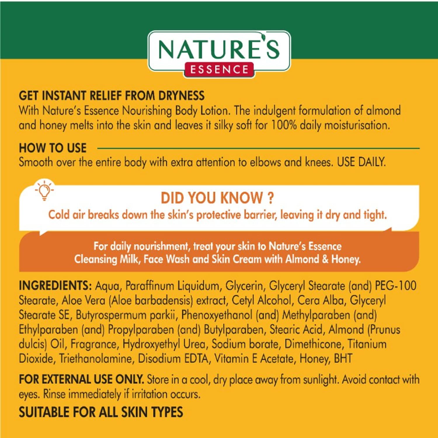 Enriched with the goodness of Almond and Honey the all new moisturizing lotion from Nature's Essence is specially formulated to soothe nourish and instantly refresh your skin in just 5 seconds. Made with natural ingredients the moisturizing lotion makes your skin radiant and protects from dryness