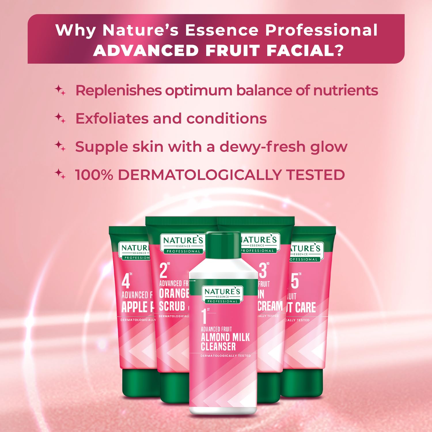Nature's Essence Professional Gentle Fruit Facial Kit | For Nourished Radiant & Dewy Fresh Skin| Goodness of fruit extracts & Vitamin E | 100% Dermatologically Tested | Suitable for All Skin Types 250gm