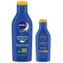 NIVEA Sun Lotion SPF 30 with UVA & UVB Protection Water Resistant Sunscreen for Men & Women 125 mlNivea sun is world's no.1 sun care. It provides immediate protection against harmful uva and uvb rays. Its pa++ and advanced collagen protect formula protects the skin's collagen to help prevent wrinkles caused by frequent sun exposure.with its light non-sticky and water resistant formula Nivea sun is the most effective way to protect your skin from the sun.NIVEA Sun Lotion SPF 30 with UVA & UVB Protection Water Resistant Sunscreen for Men & Women 75 mlNivea sun protect & moisture lotionâs immediate absorption formula provides advanced collagen protection that prevents wrinkles. It restores the skinâs moisture lost due to sun exposure. Nivea sun protect & moisture lotion is non-oily non-greasy and water resistant. Also available in spf 50. Compatibility dermatologically proven.