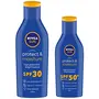 NIVEA Sun Lotion SPF 30 with UVA & UVB Protection Water Resistant Sunscreen for Men & Women 125 mlNivea sun is world's no.1 sun care. It provides immediate protection against harmful uva and uvb rays. Its pa++ and advanced collagen protect formula protects the skin's collagen to help prevent wrinkles caused by frequent sun exposure.with its light non-sticky and water resistant formula Nivea sun is the most effective way to protect your skin from the sun.NIVEA Sun Lotion SPF 50 with UVA & UVB Protection Water Resistant Sunscreen for Men & Women 75 mlNivea sun is world's no.1 sun care. It provides immediate protection against harmful uva and uvb rays. Its pa++ and advanced collagen protect formula protects the skin's collagen to help prevent wrinkles caused by frequent sun exposure.with its light non-sticky and water resistant formula Nivea sun is the most effective way to protect your skin from the sun.