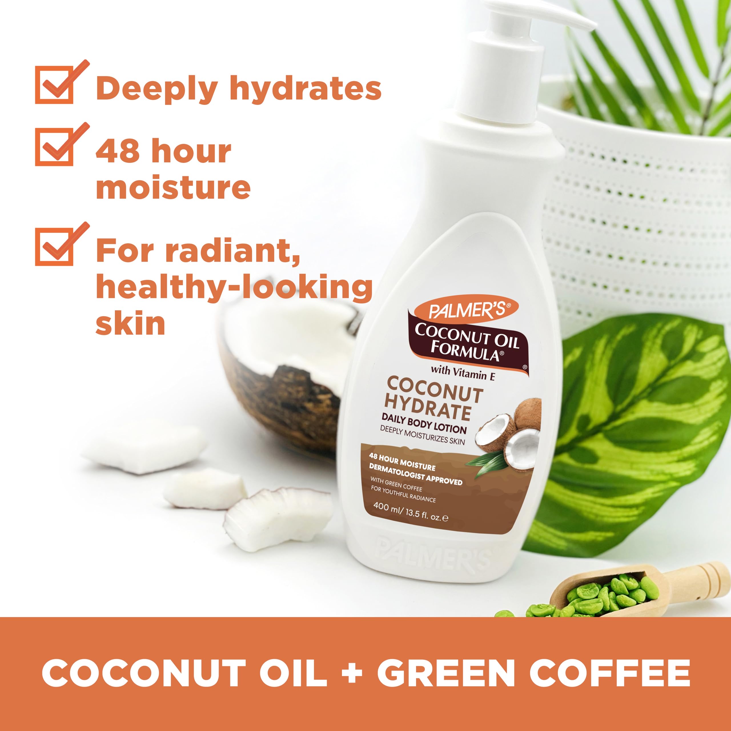 Hydrate and replenish skin with Palmer's Coconut Oil Formula daily body lotion crafted with antioxidant-rich Coconut Oil and Green Coffee Extract for radiant healthy-looking skin. Curious about the effects of green coffee extract on skin? Dermatologists and experts have been privy to the power of green coffee extract skin care for years and now it's your turn. This moisturizing body lotion for dry skin delivers luxurious long lasting moisture for decadently pampered skin all day long. Proudly made in U.S.A. Palmer's has been a trusted brand for over 180 years providing high-quality natural products that are passed down from generation to generation. America's #1 Coconut Oil Skin Care brand Palmer's Coconut Oil Formula uses the highest quality natural ingredients for superior moisturization head-to-toe.