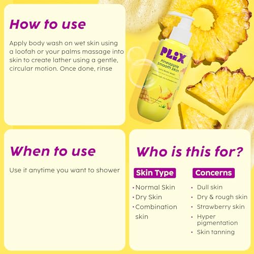 Elevate your skincare and underarm care routine with the comprehensive Plix Pineapple Body Wash Peaches & Lemon Body Lotion and Pineapple Odour Control Underarm Roll-On Combo. Formulated to address a myriad of concerns this dynamic trio is your ultimate solution for achieving smooth tan-free skin and radiant underarms. The Pineapple Body Wash gently exfoliates and hydrates with its Fruit+Active formula enriched with 5% Lactic Acid Aloe Vera Extract Betaine and anti-inflammatory Pineapple Extract. Follow it up with the Peaches & Lemon Body Lotion a potent fusion of 5% Niacinamide Glutathione Hyaluronic Acid and brightening fruit extracts providing deep nourishment and sun protection with SPF 15. Complete your regimen with the Pineapple Odour Control Underarm Roll-On featuring science-backed ingredients like Lactic Acid Mandelic Acid Vitamin C and Pineapple Extract to lighten dark areas hydrate and combat odour-causing bacteria. Incorporate these products into your daily A.M. and P.M. routines to reveal smoother brighter skin and visibly lighter underarms. Say goodbye to dullness dryness and pigmentation and embrace confidence with this comprehensive skincare and underarm care solution from Plix.