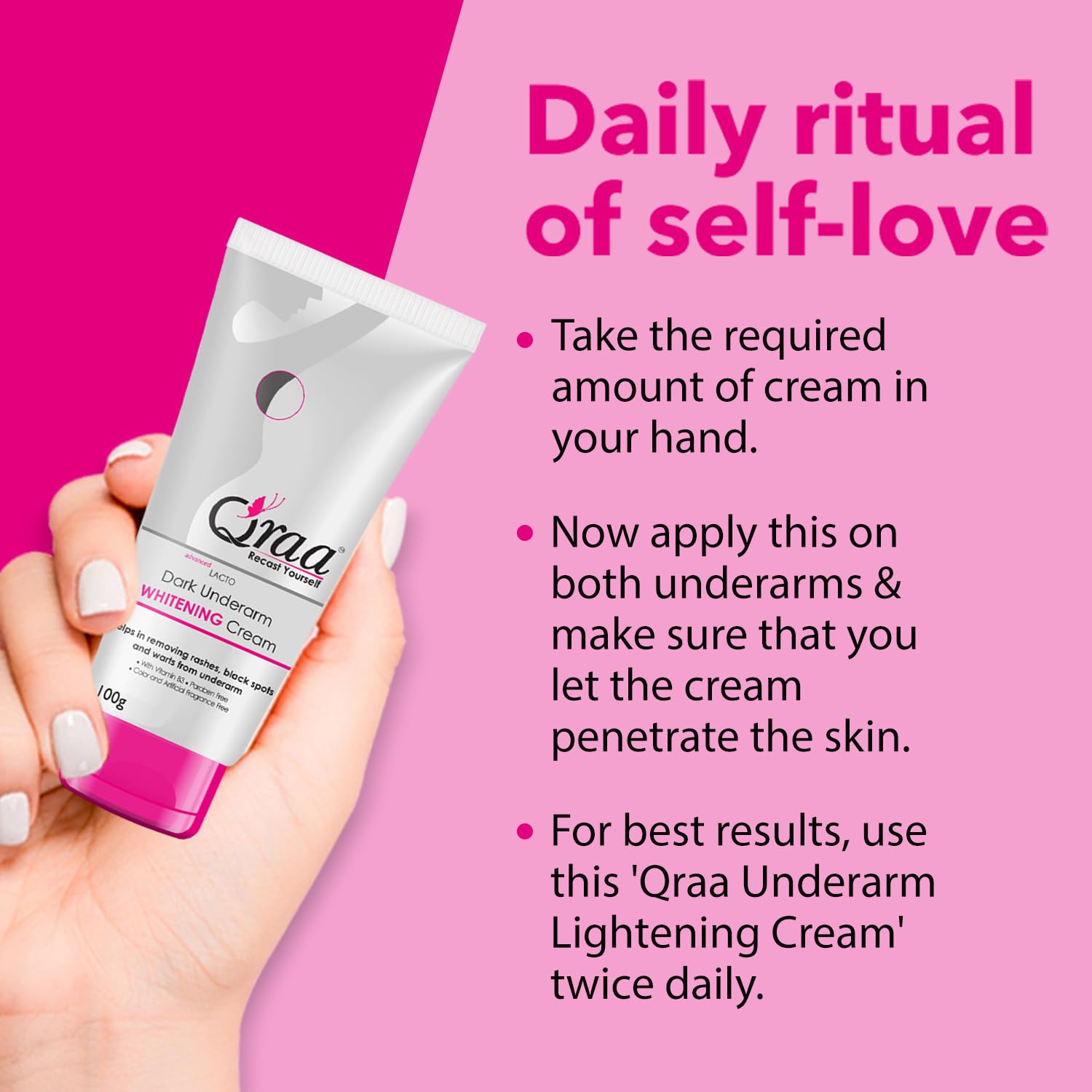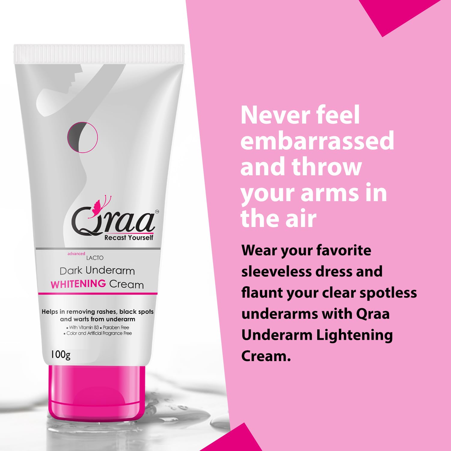 Qraa Advanced Lacto Dark Sensitive Underarm Lightening Cream 100g For even toned underarms - Paraben Free