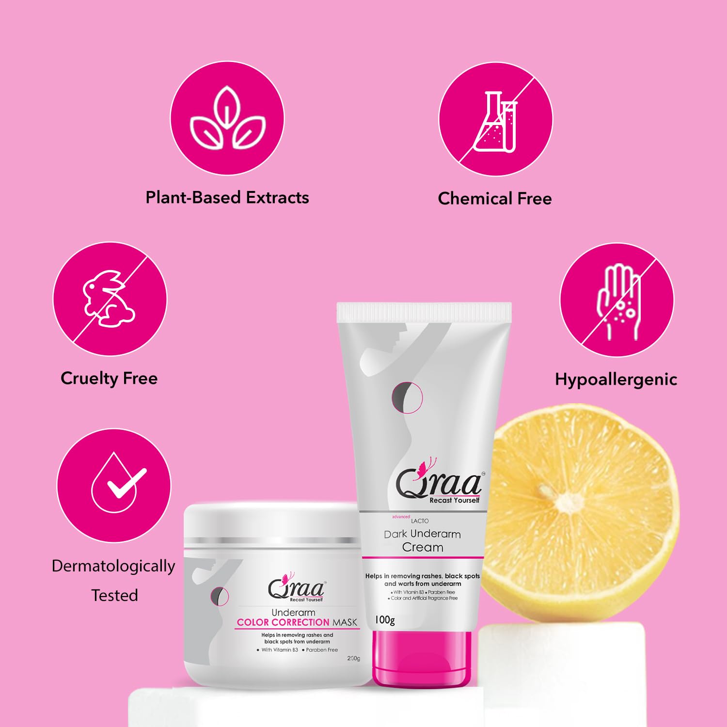 HomeHealth & PersonalSkin CareBody CareBody Lotion & CreamQRAA Underarm Kit for Dark Underarms |For Uneven Skin Tone and Dark Underarms |Paraben Free | For Dark Body Parts like Neck Ankles Knuckles Armpits Thighs Elbows & Underarm ( 350gm ) Pack of 2