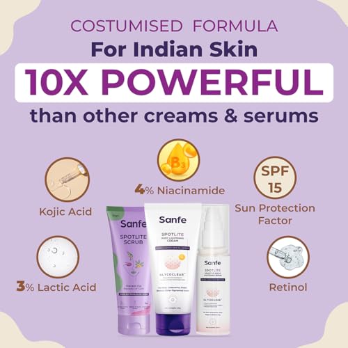 Sanfe Spotlite Bright & Glo Kit for Dark Neck | 6 In 1 Glo Boost Cream | 3 In 1 Privy Lightening Serum | 3 In 1 Privy Brightening Scrub | Bright & Smooth Skin | Kojic Acid & Lactic Acid Spotlite
