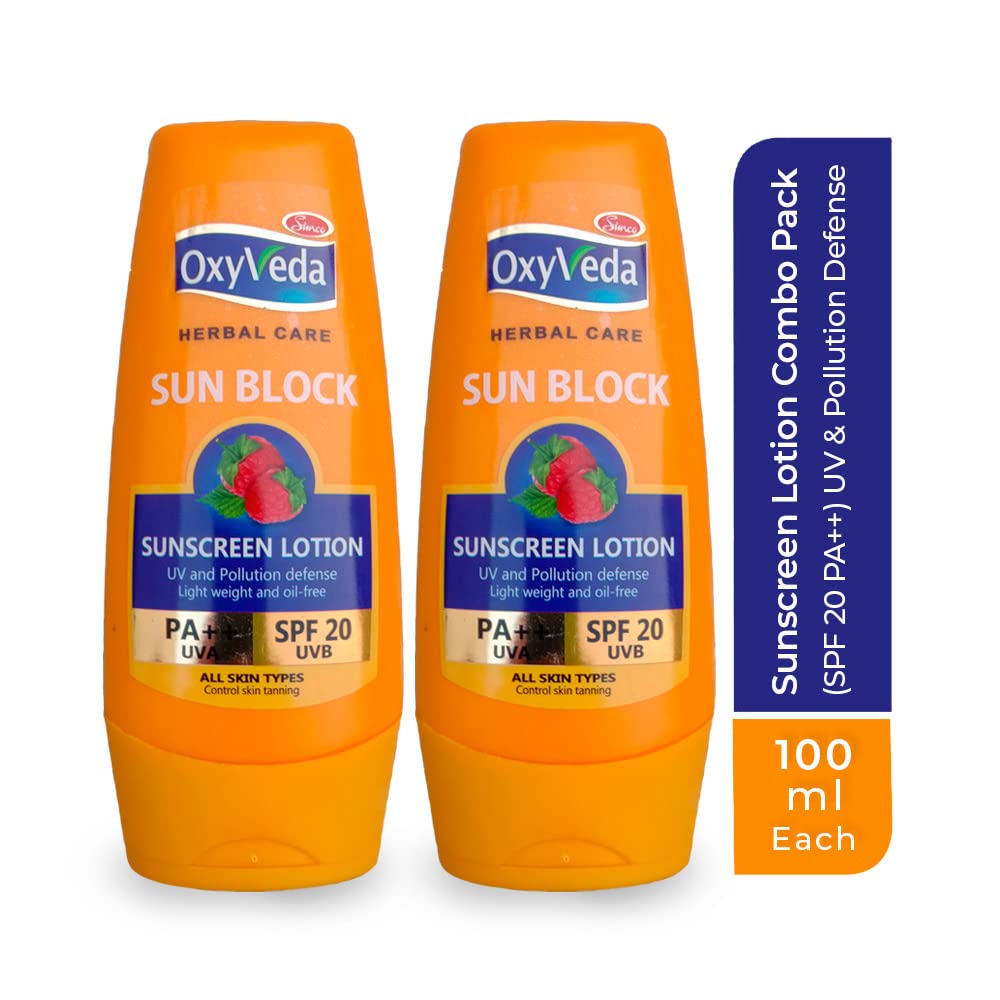 Experience nourished soft and glowing skin with Simco Oxyveda Sunscreen Lotion SPF 20 PA++. This Sunscreen lotion combo pack for women and men provides your skin day-long protection from harmful UVA/UVB rays and daily pollutants. This is one of the best sunscreen lotions that are suitable for all skin types.