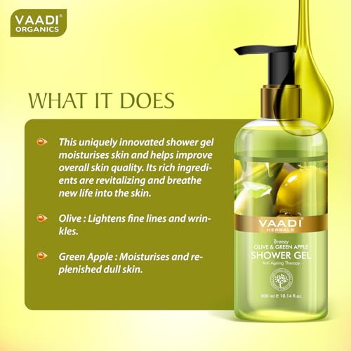 Vaadi Herbals Shower Gel, Breezy Olive and Green Apple, 300ml