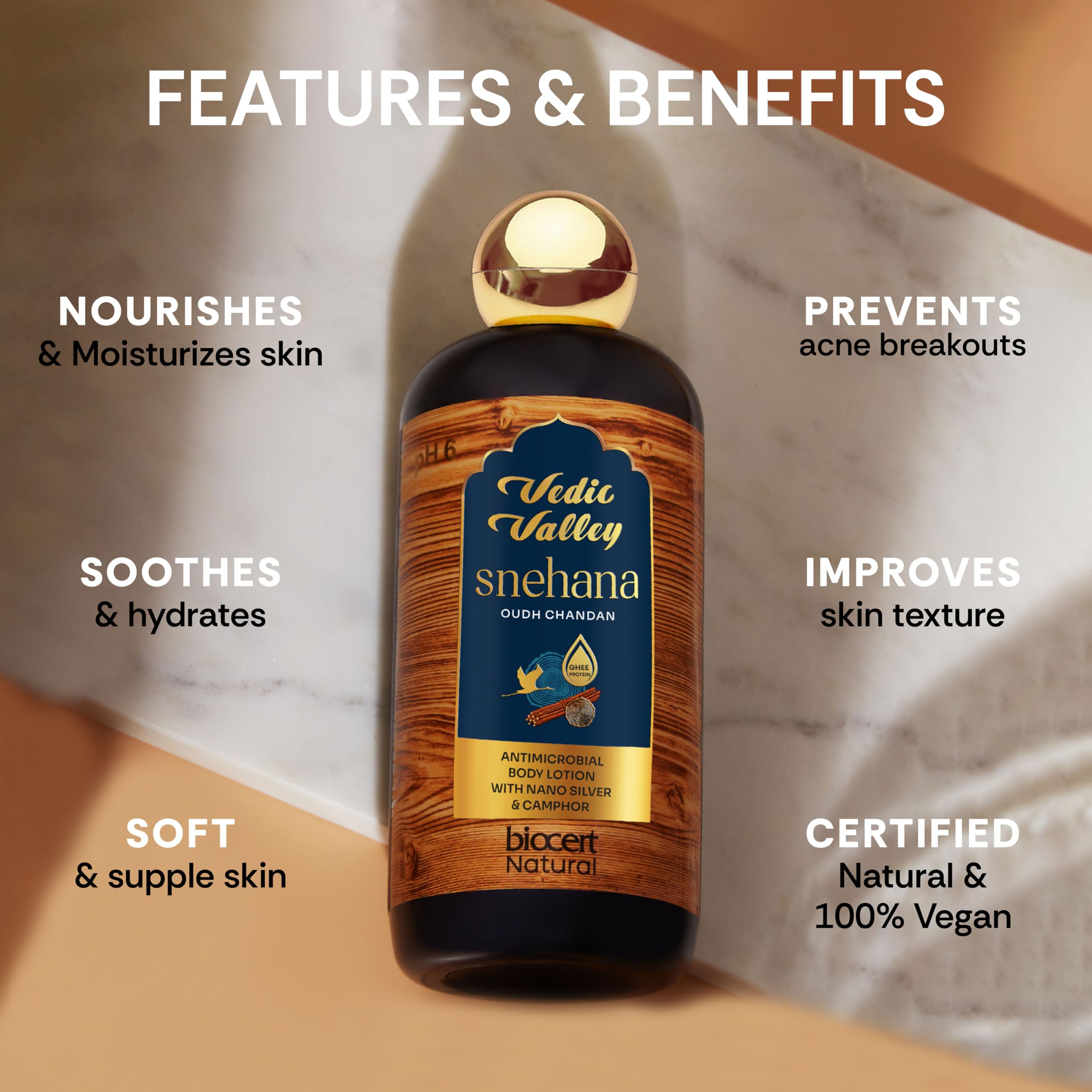 HomeHealth & PersonalSkin CareBody CareBody Lotion & CreamVedic Valley Paraben Free Oud Chandan Glow Body Lotion for Women & Men - 300 ml with Shea Avocado Butter Deeply Nourishes & Moisturizes Lightweight Non-Sticky Brightening for All Skin Types