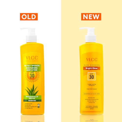 VLCC de tan plus white glow moisturising body lotion spf 30 pa+++ is an effective formulation that moisturises and soothes the skin while offering sun protection against uva and uvb rays thus preventing premature aging and tanning. Enriched with aloe vera it soothes the skin brightens skin tone moisturises and hydrates while fading tan leaving skin nourished and glowing. How to use 1. Massage gently all over face neck hand & arms and other sun exposed body parts. 2. Best to be applied 15-20 minutes prior to stepping out in the sun. Reapply in case of long duration sun exposure 3. Stay Protected with Broad Spectrum Sun Protection