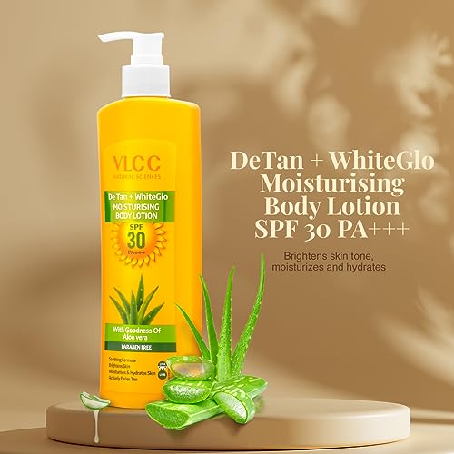 • VLCC De Tan + WhiteGlo Moisturising Body Lotion SPF 30 PA+++ is an effective formulation that Brightens skin moisturizes and soothes the skin.