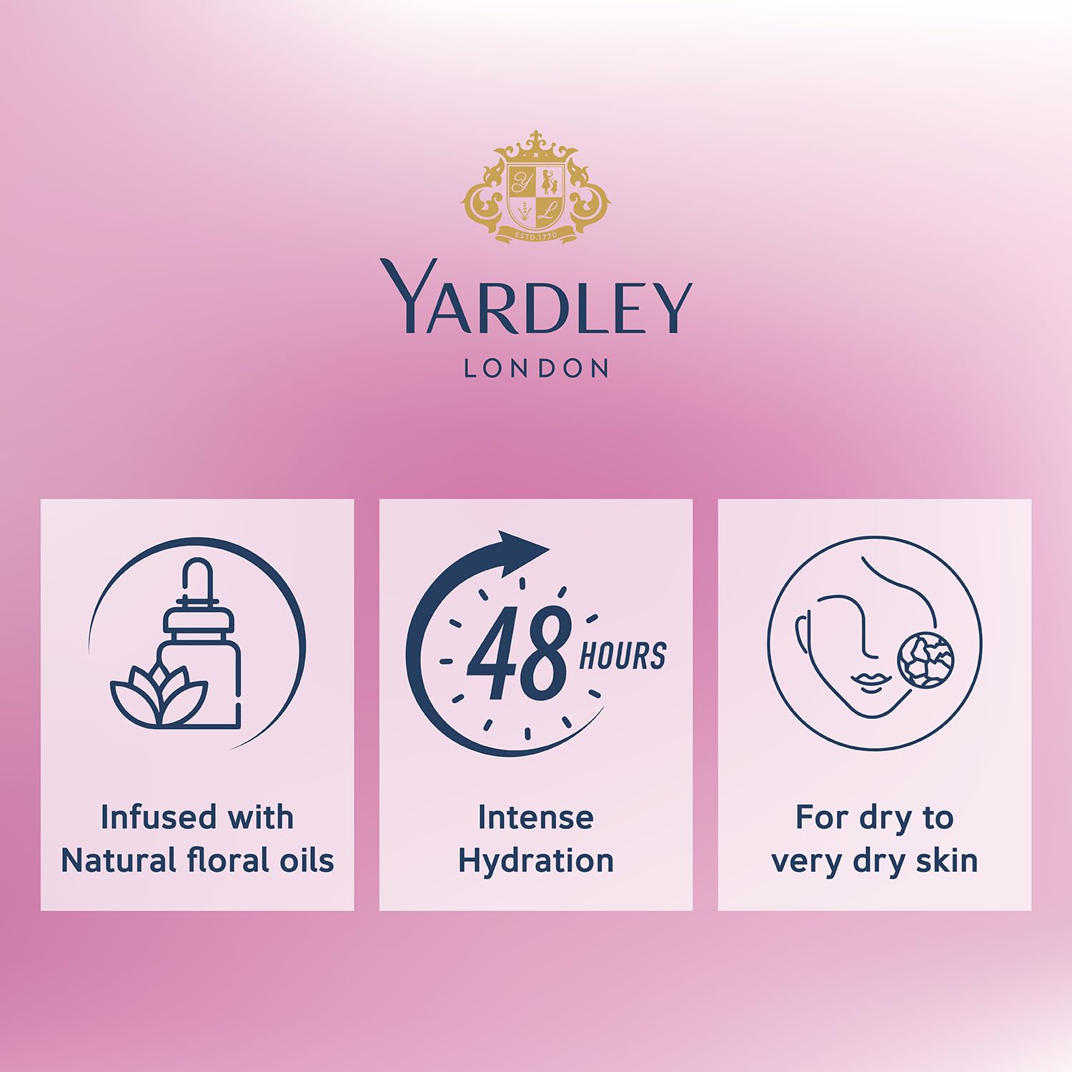 Indulge in the luxurious care of Yardley London's English Rose Moisturising Hand and Body Lotion. This opulent lotion is a harmonious blend of time-tested ingredients and the timeless beauty of freshly plucked roses from original English gardens. Enriched with the goodness of vitamins B3 and C this lotion nourishes and enhances your skin's natural radiance. Vitamin C helps retain youthful skin while B3 works diligently to fade marks and blemishes revealing fairer more flawless skin with each use. The scent of freshly plucked roses and geranium oil in Yardley London's women's range will transport you to the serene beauty of English gardens allowing you to bask in the essence of nature with every application. For a silky-smooth even application begin at your ankles and work your way up to your neck section by section. Use just enough lotion on your hands for each part to ensure a luxurious experience. With a legacy of over 250 years Yardley London is synonymous with English luxury. They specialise in classic single-note scents and trend-led floral bouquets offering you a scent that embodies the essence of England. Trust in Yardley London to provide you with authentic premium-quality floral fragrances and body products that stand the test of time. Experience the luxurious combination of skincare and fragrance with Yardley London's English Rose Hand and Body Lotion and embrace the beauty of Englishness luxury quality and natural fragrances in every drop.