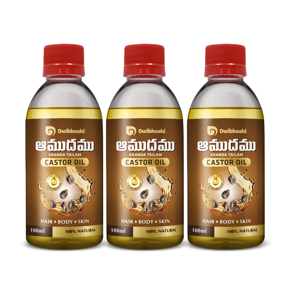 Dwibhashi Castor Oil | Supports Hair Growth Glowing Skin & Strong Nails | 300 ml (Pack of 3)