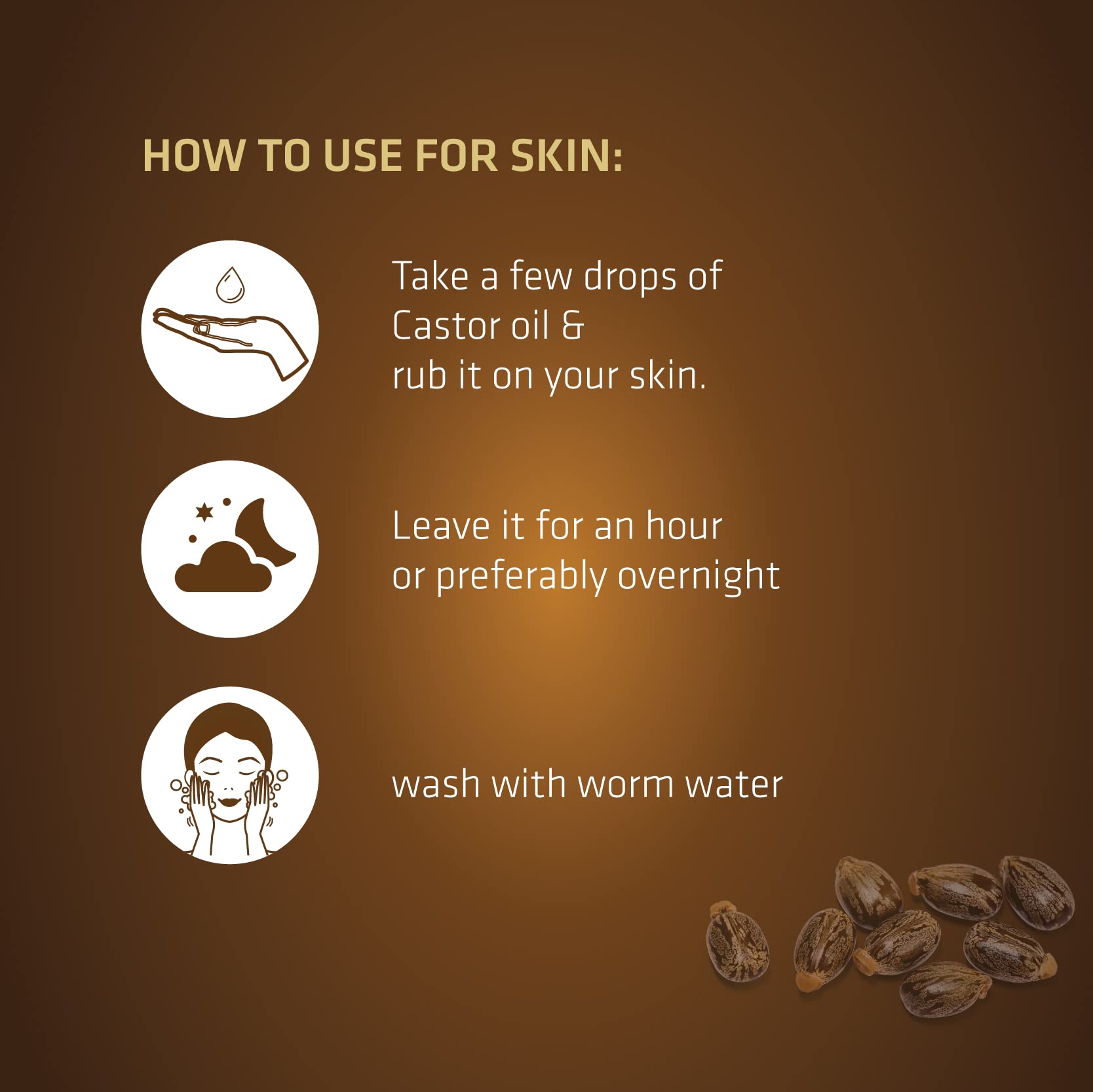 • Take a few drops of Castor oil and rub it on your skin.