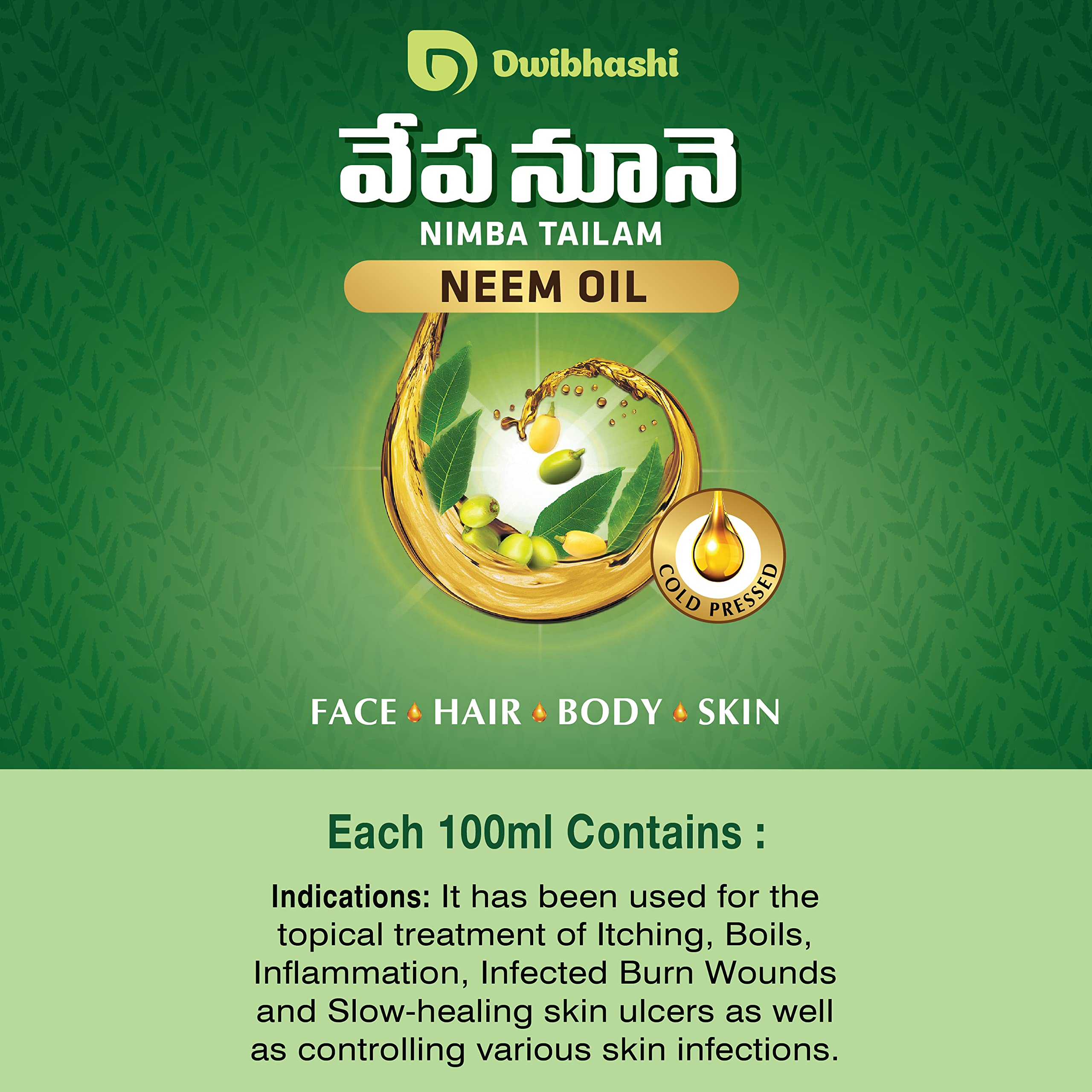 Dwibhashi Neem Oil | Moisturises The Skin Treats Scars and Blackheads | 200 ml
