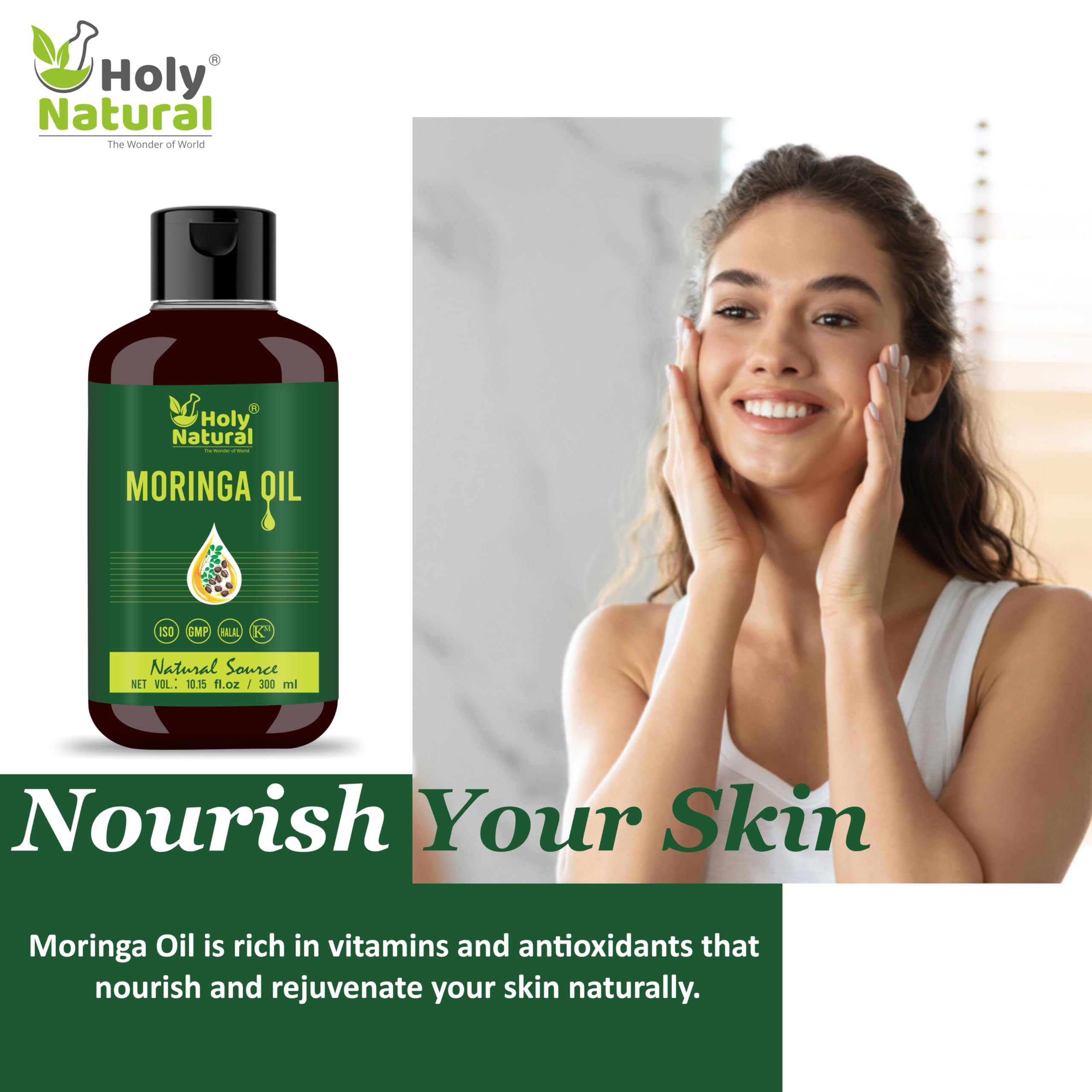 Holy Natural's Moringa Oil (10.15 fl oz/ 300ml) | Pure & Natural, Cold Pressed Virgin, Good For Skin, Hair and Body
