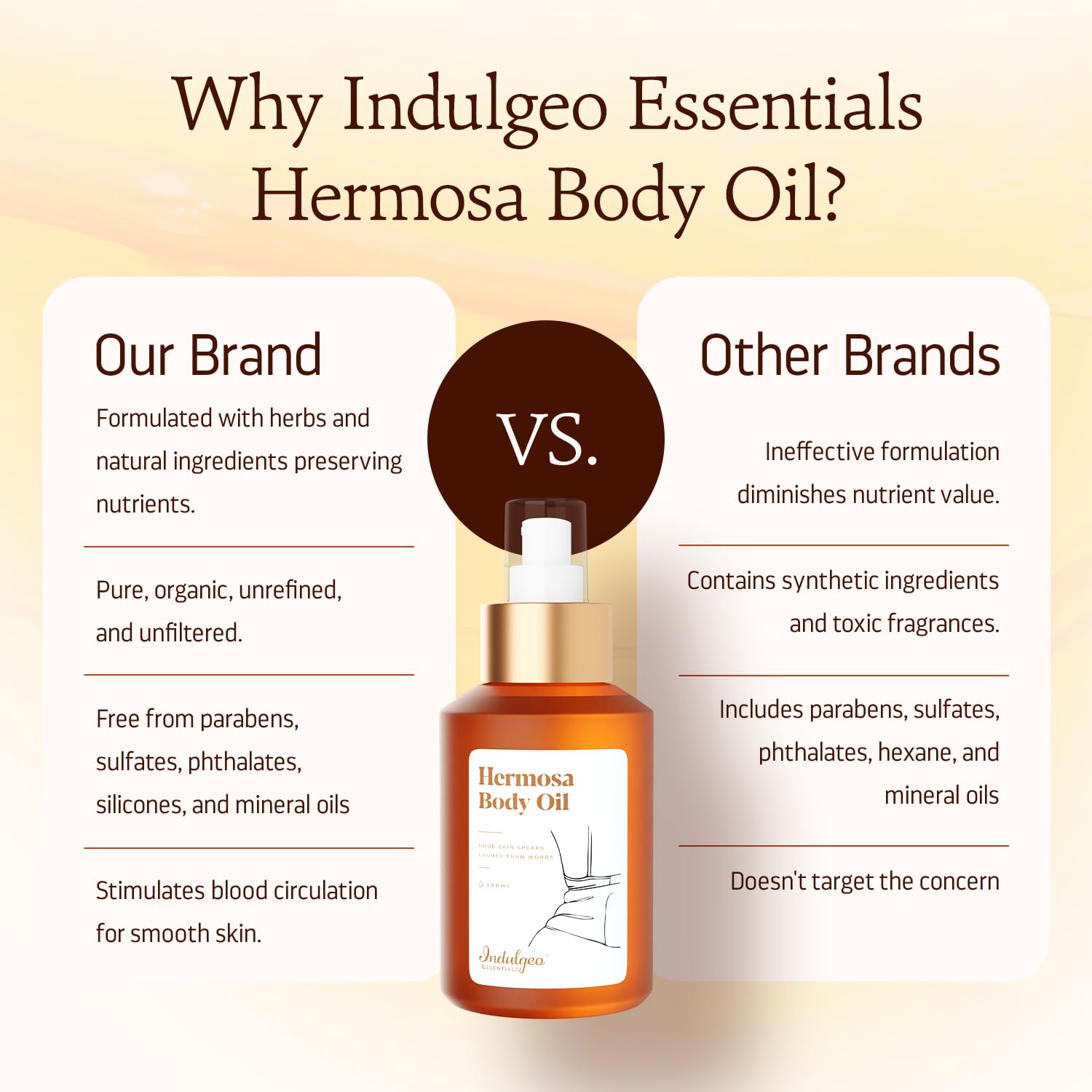 HomeHealth & PersonalSkin CareBody CareBody OilsIndulgeo Essentials Hermosa Body Oil for Women | After Bath Body Oil to Reduce Dry Dull Dark Areas of Skin Like Underarms & Thighs | Help to Reduce Hyperpigmentation | Best for Winters to Moisturize Skin - (100 mL)