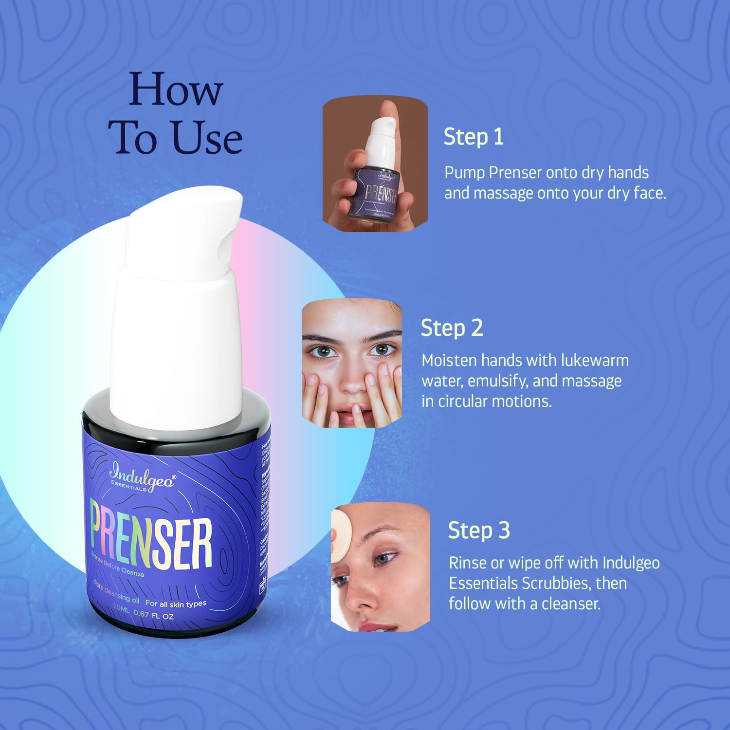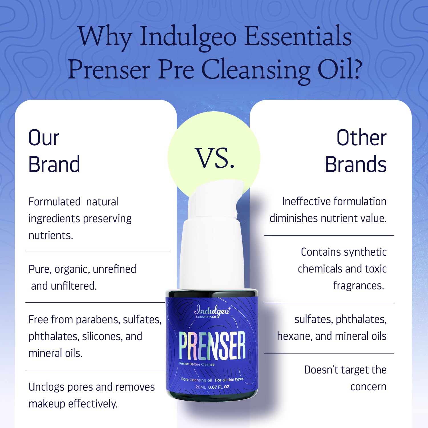 INDULGEO ESSENTIALS Prenser Pre Cleansing Oil for Makeup Removal | Deep Cleanser for Face Reduce Blackheads & Open Pores Nourishing Formula Organic (20ml)