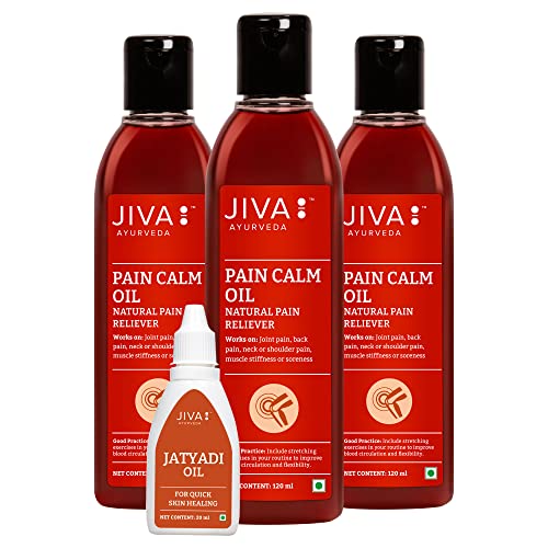 Jiva Pain Calm Oil 120ml With Free Jatyadi Oil 20 ml | 100% Ayurvedic Formula | Blend Of 5 Ayurvedic Oils | Relieves Muscle & Joint Pain | Controls Swelling & Joint Inflammation (Pack of 3)