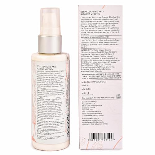 Mantra Herbal Deep Cleansing Milk Almond And Honey - 100 ml | Removes Waterproof Makeup, Removes Dust, Oil and Grime