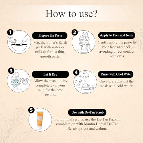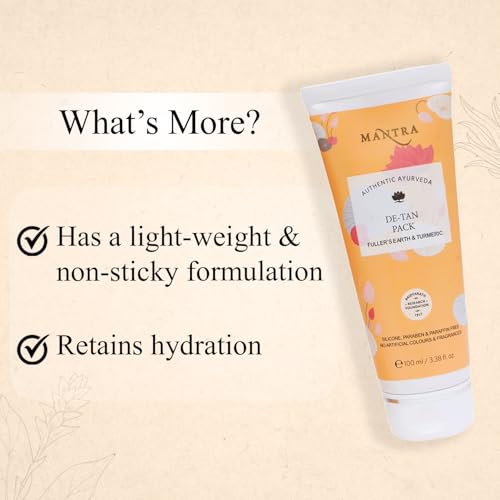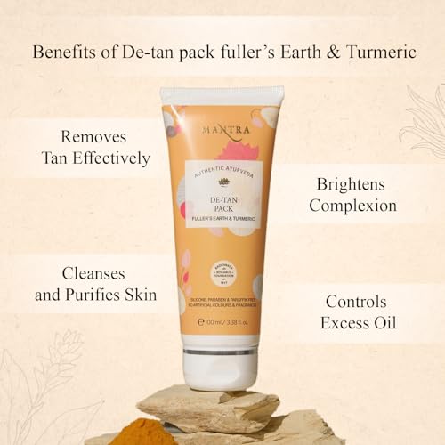 Mantra Herbal De-Tan Pack Fuller’s Earth & Turmeric - 100 ml | Controls Excess Oil and Detans Skin | For Best Results, Use it with Mantra Herbal's Gulab Arka