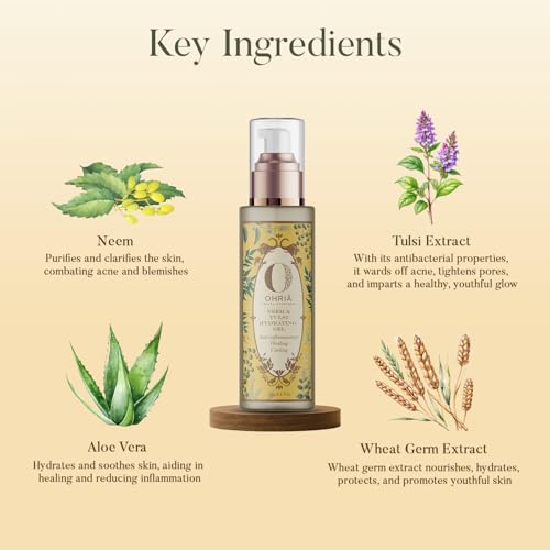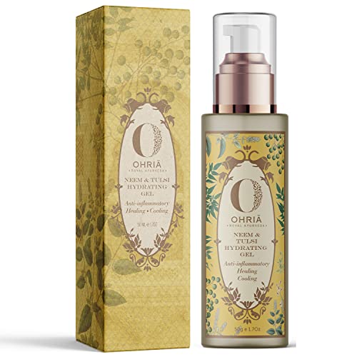 Ohria Ayurveda Neem & Tulsi Hydrating Gel For Anti-inflammatory Healing & Cooling. An extremely light cooling gel hydrates & soothes inflammation & sunburn with Neem Tulsi and Mint extracts. Beneficial for sensitive and acne-prone skin. Soothing as a natural calming aftershave gel.