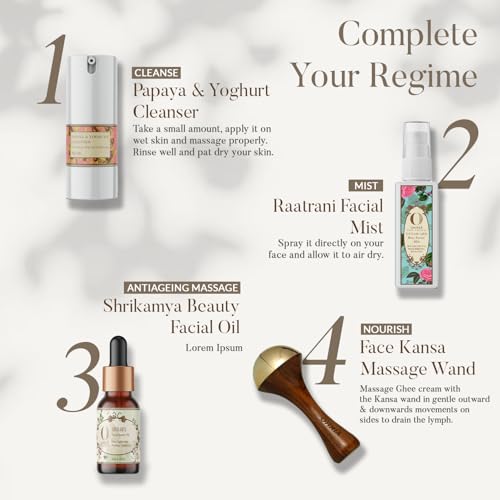 Concentrated beauty dose packed with skin illuminating potent herbs. Finely crafted for its affinity to the kansa Facial massage tool. Assists in massage benefits improving skin texture & elasticity. Removes pigmentation rendering skin clear smooth & even tone. skin radiance & brightening herbs of Rakt Chandan Kasturi Manjal Yasthimadhu and essential oil of Parijat flowers is infused with pure kashmiri Saffron oil.