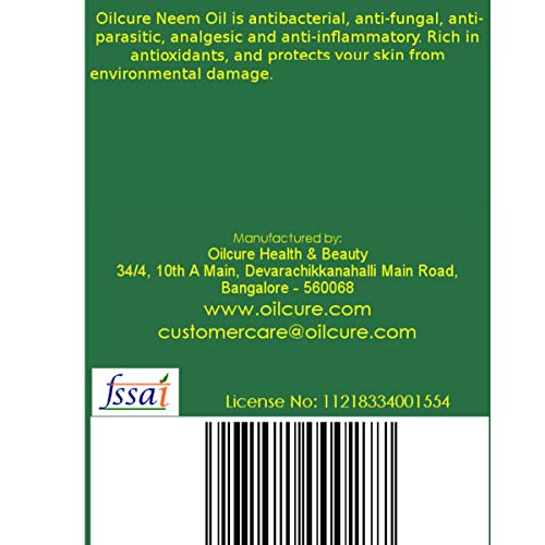 Oilcure cold pressed neem oil is organic edible pure natural and free from chemicals or preservatives. Neem Oil is antibacterial anti-fungal anti-parasitic analgesic and anti-inflammatory. Rich in antioxidants and also helps protect your skin from environmental damage. It is also rich in vitamins and fatty acids. It can also be used as a natural repellent to keep mosquitoes and other insects away naturally. Also helps to keep away lice dandruff acne pimple.
