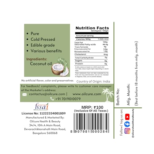 Oilcure Virgin Cold Pressed Coconut Oil is a perfect gift by nature to mankind. Vitamin K and E present in Coconut oil very important to maintain the health of our skin and hair. It is also great for weight loss.