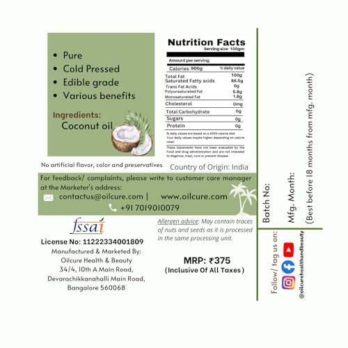 Oilcure Virgin Cold Pressed Coconut Oil is a perfect gift by nature to mankind. Vitamin K and E present in Coconut oil very important to maintain the health of our skin and hair. It is good for weight loss. Also great for baby massage.