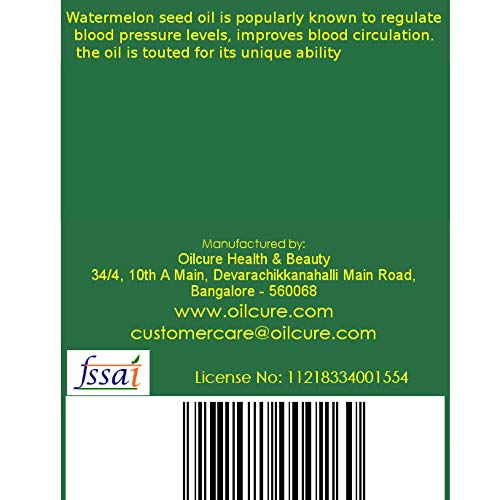 Oilcure Watermelon seed oil is popularly known to regulate blood pressure levels improves blood circulation the oil is touted for its unique ability to allow the skin to breath and eliminate toxins while providing moisture to the skin and actually dissolves the build up of oil within the pores.